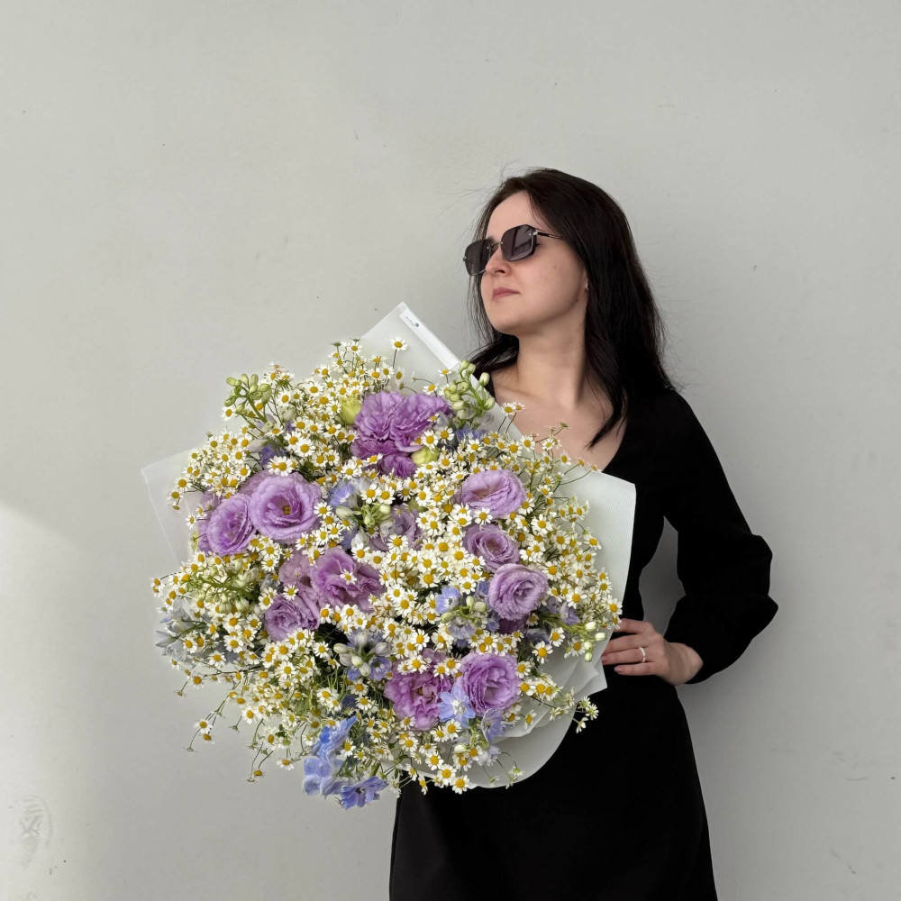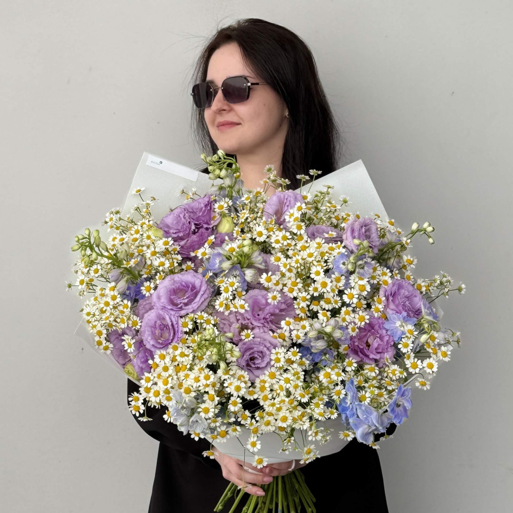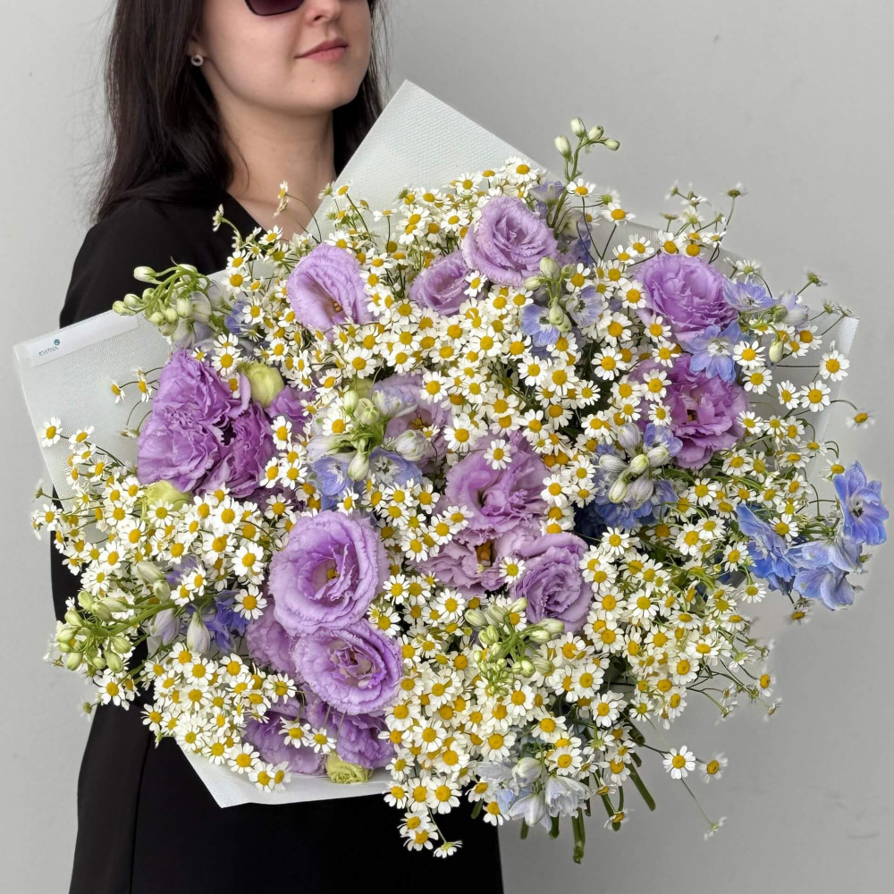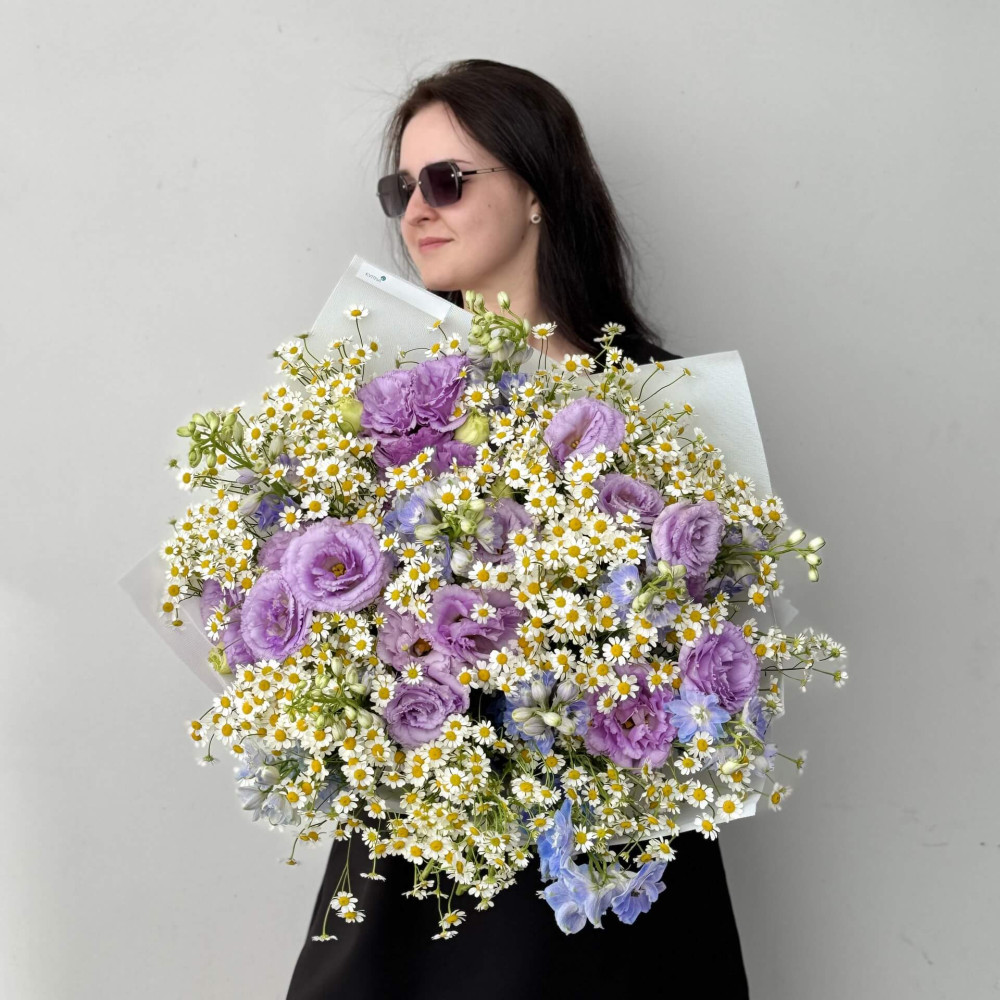 - Як замовити Фантастичний польовий букет з танацетумом та еустомою «Поцілунок в Провансі»? ❯