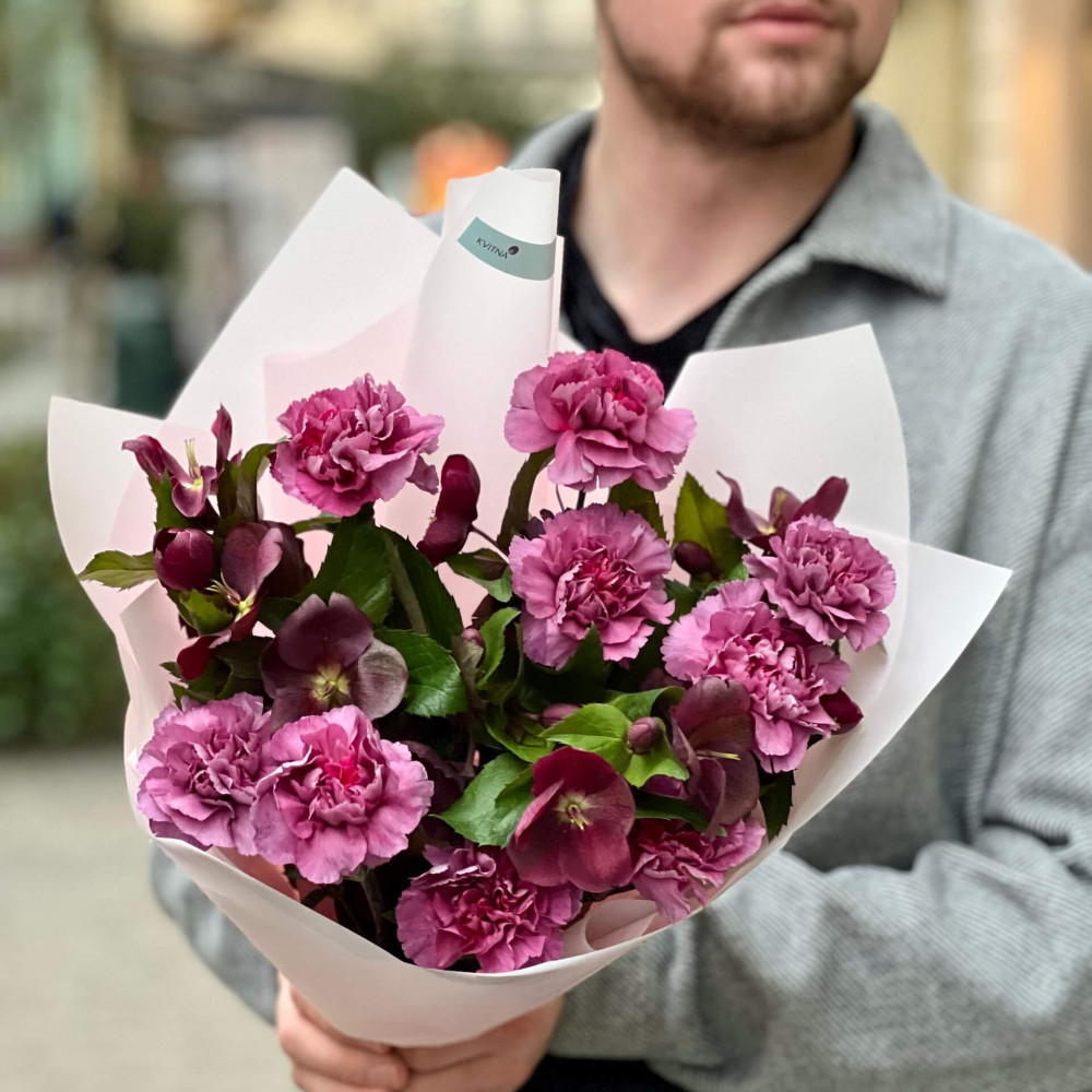 - Як замовити Фіолетовий букет із діантусів і хелеборуса «Таємнича Юліана»? ❯