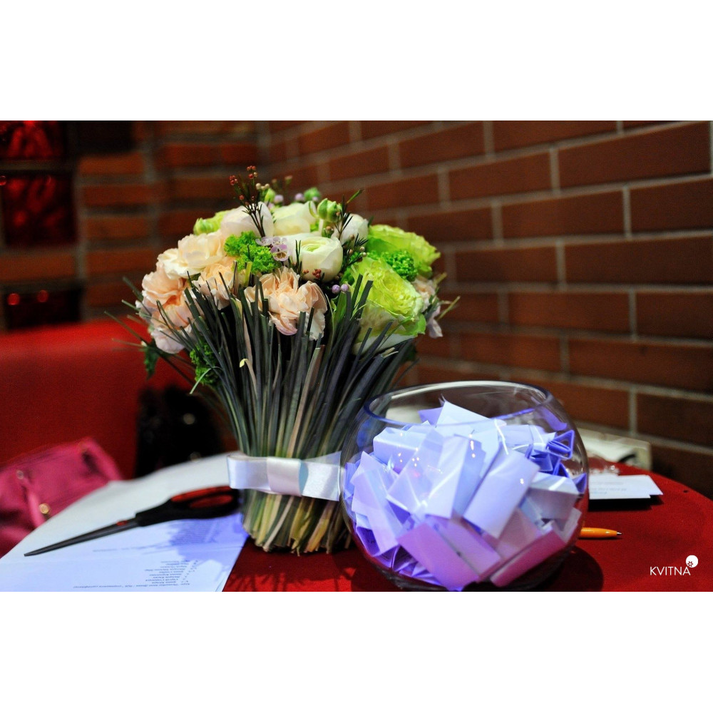 Нехай композиція (коробка, кошик, сніп) з квітами від Квітна тішить Вас якнайдовше!