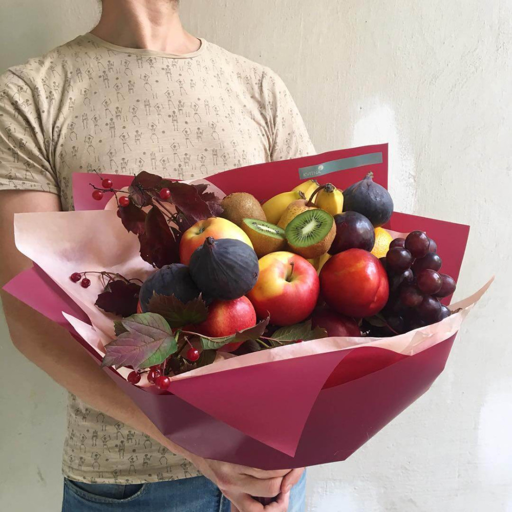 Фруктовий букет з інжиром, яблуками і виноградом