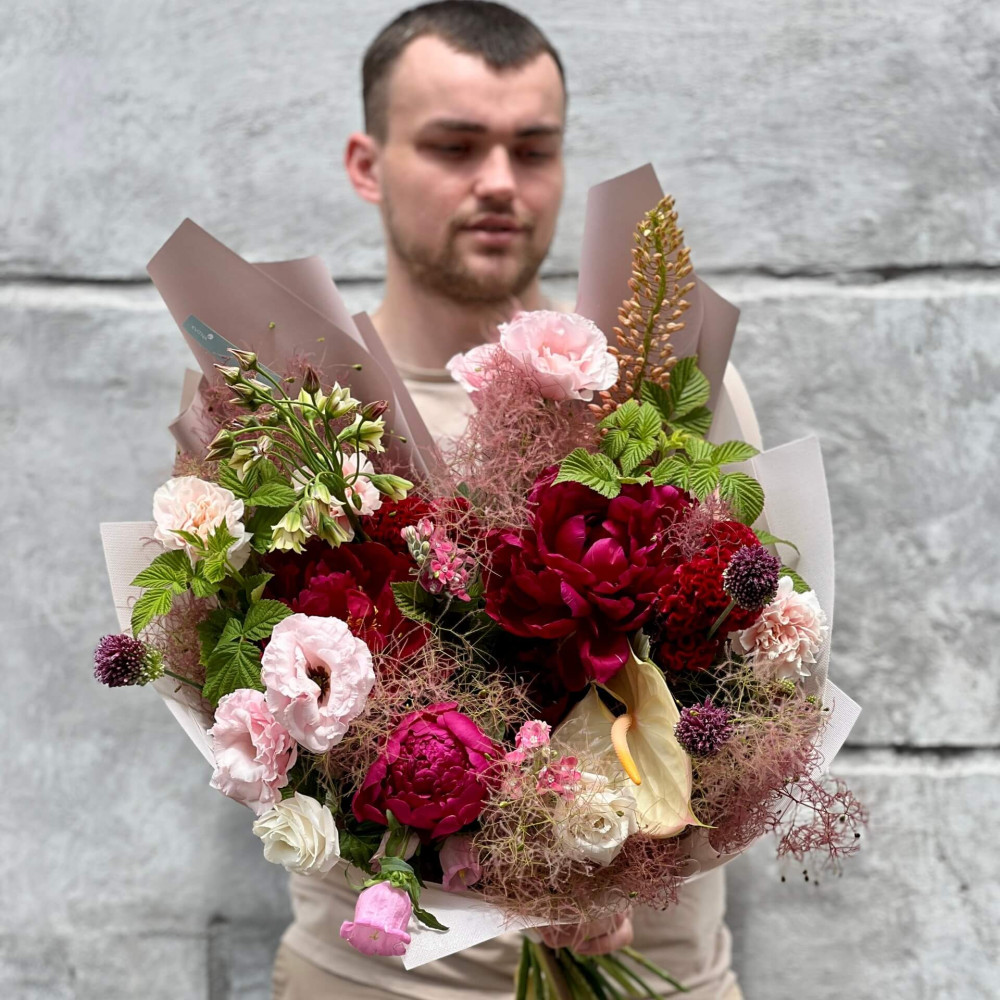 - Як замовити Яскраво-ніжний фактурний букет «Дика вишня»? ❯