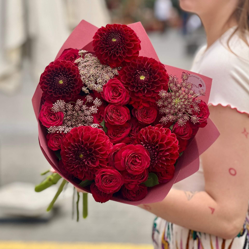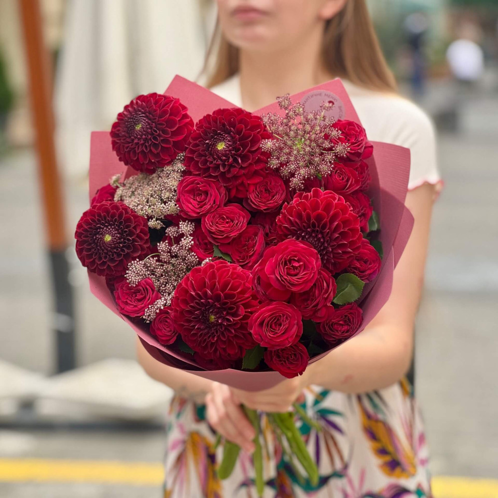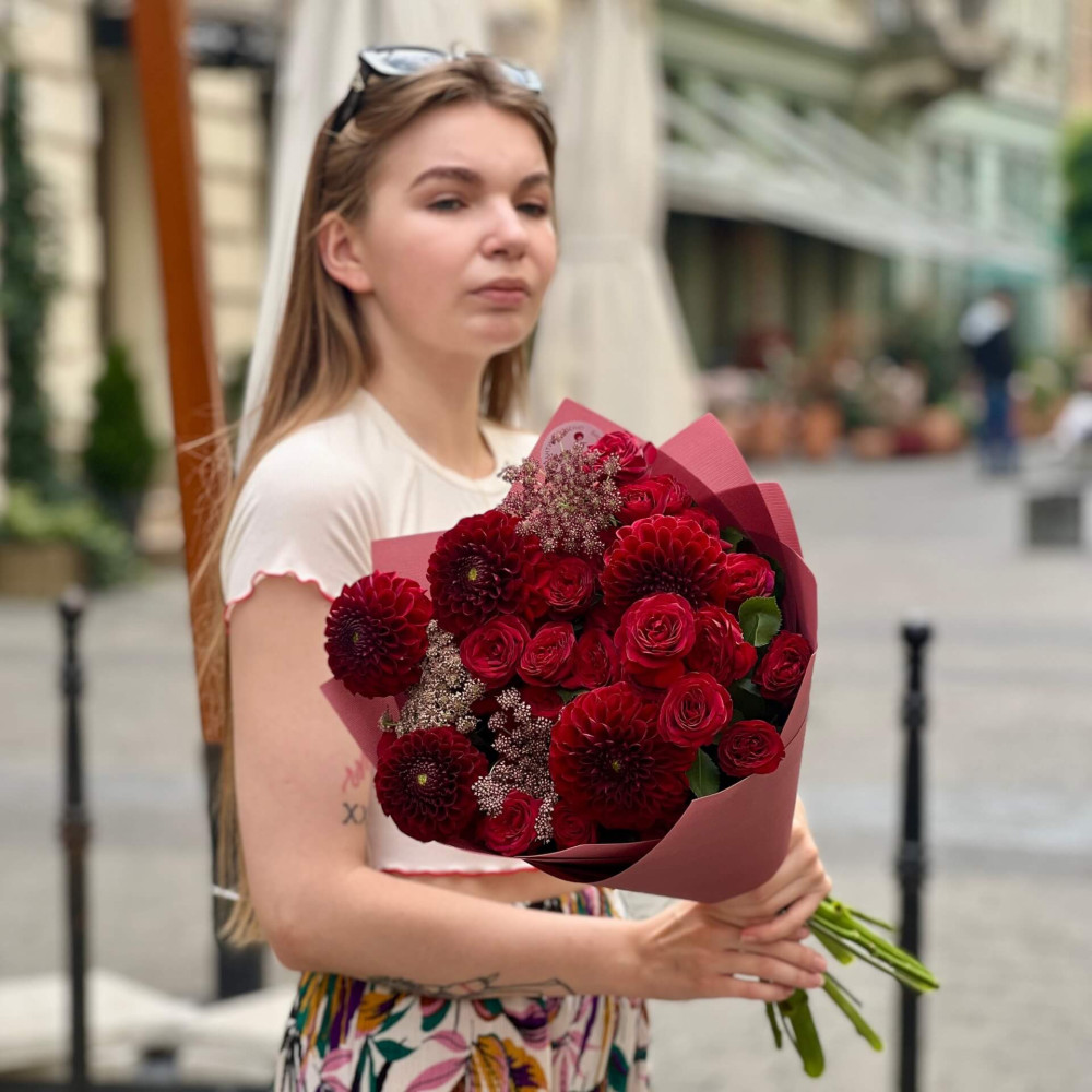 - Як замовити Яскравий букет в бордових тонах «Глибокі почуття»? ❯