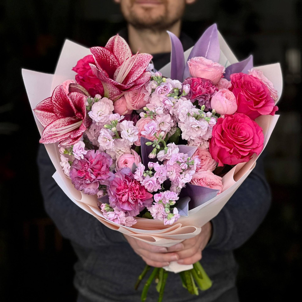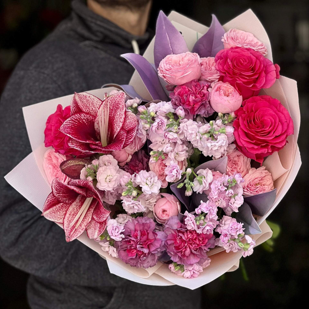 - Як замовити Яскравий букет з амарилісом «Малинова симфонія»? ❯
