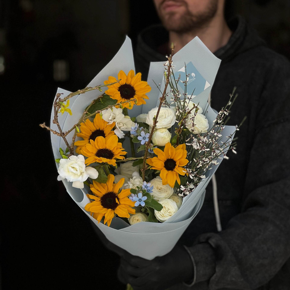 - Як замовити Яскравий букет з геліантусами «Сонячний сон»? ❯