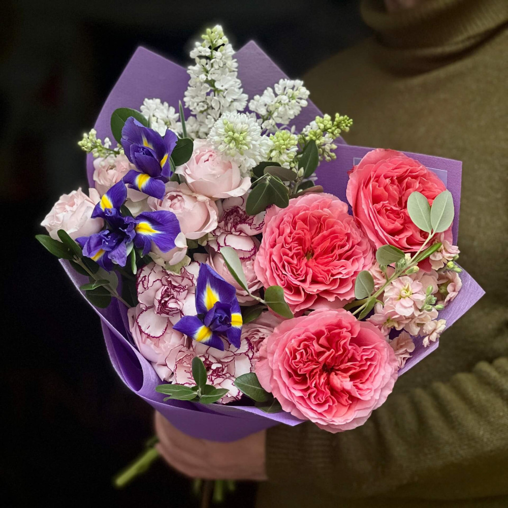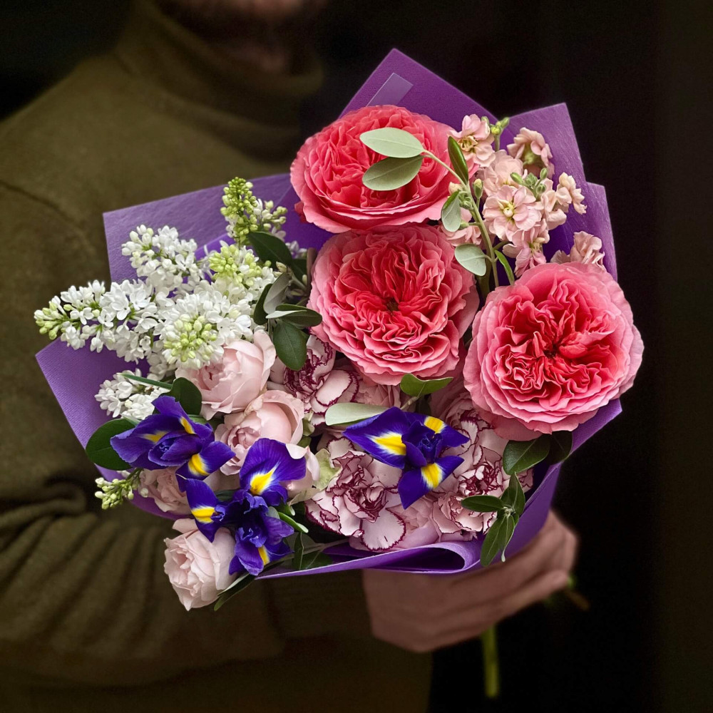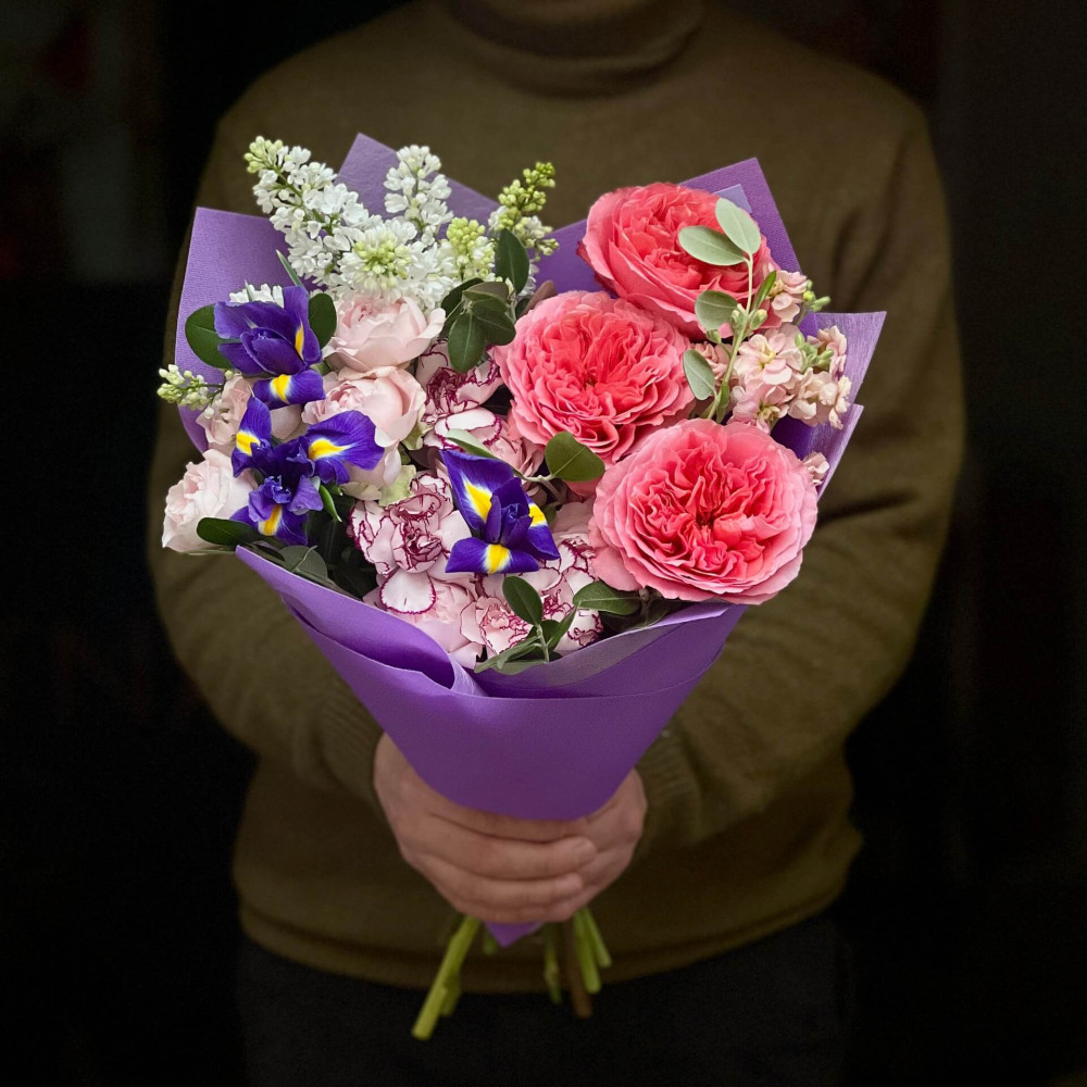 - Як замовити Яскравий букет з трояндою Candy X-Pression та ірисами «Весняний візерунок»? ❯