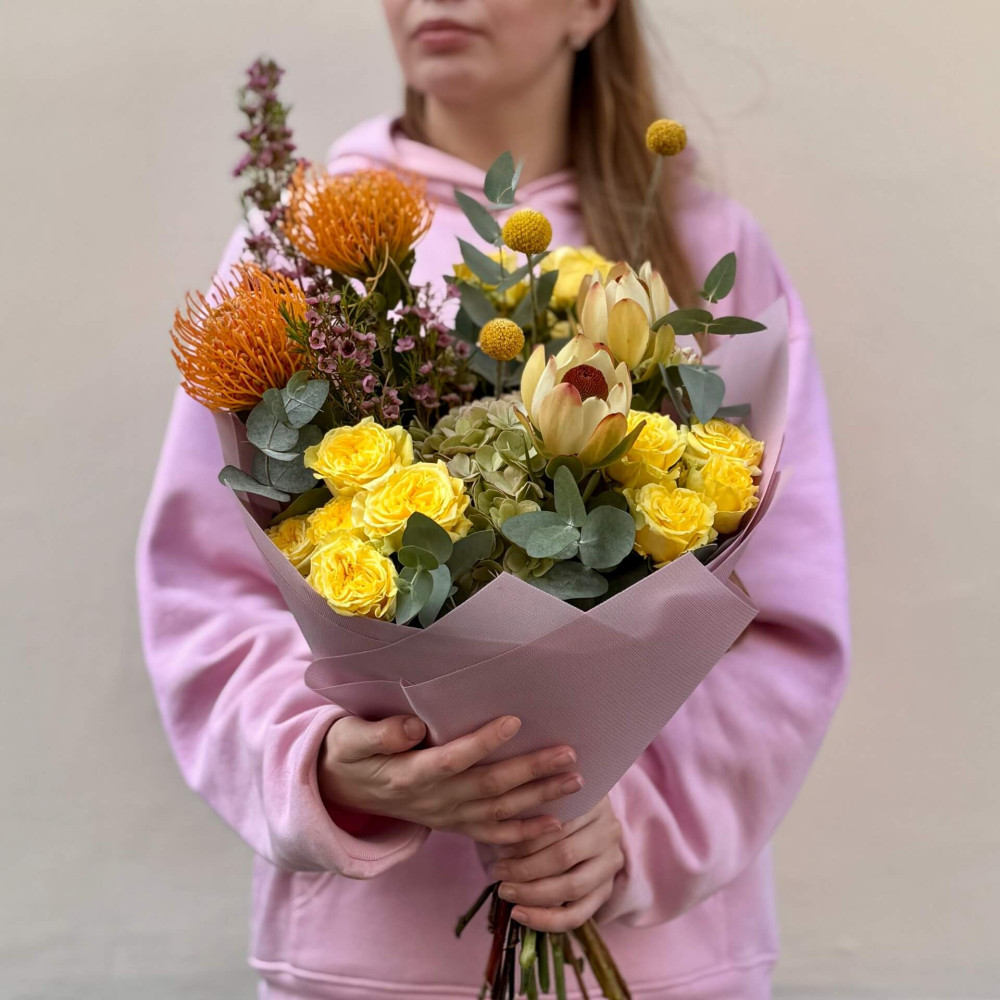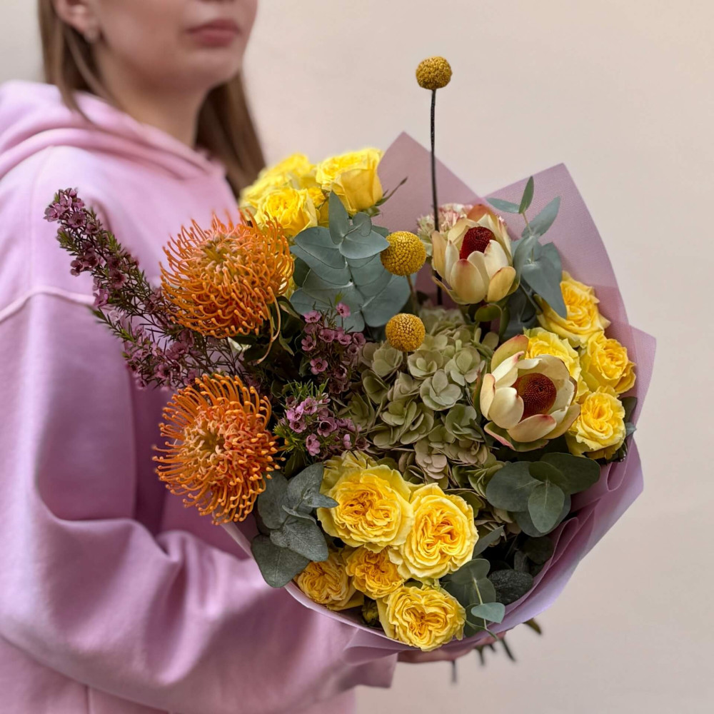 Залежно від сезонності і наявності квітів ми залишаємо за собою право змінювати склад букета без повідомлення замовника, зберігаючи при цьому авторський стиль, колірне рішення, концепцію букета. У разі, якщо необхідна заміна базової квітки, заміна відбувається з узгодженням із замовником. Якщо для Вас критично важлива присутність в складі певної квіточки – обов'язково зв'яжіться з нами та повідомте про це.