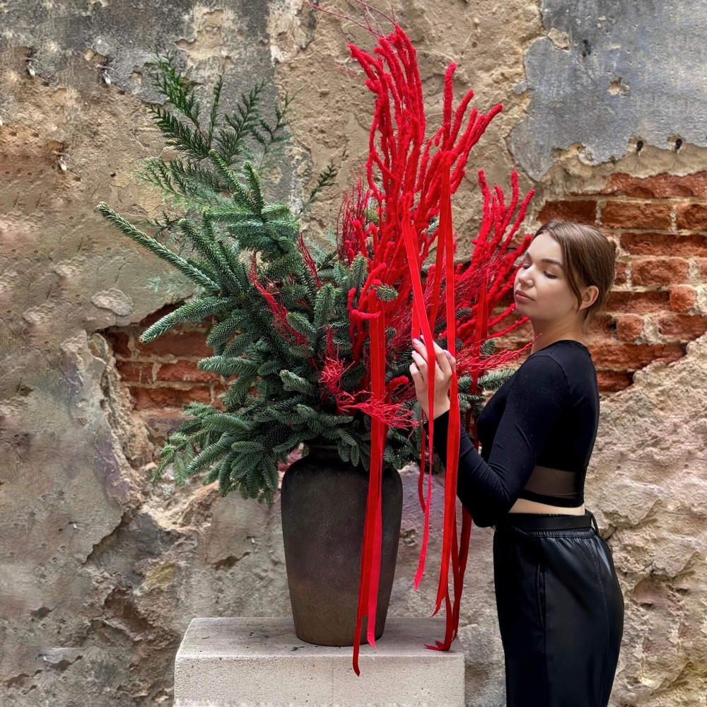 - Як замовити Інтер'єрна композиція із хвої з яскравими стрічками «Стильний акцент»? ❯