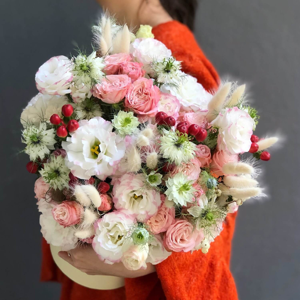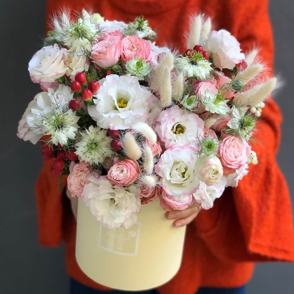 Нехай композиція (коробка, кошик, сніп) з квітами від Квітна тішить Вас якнайдовше!