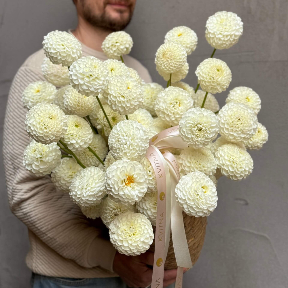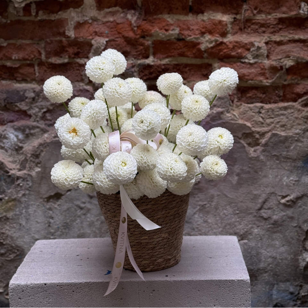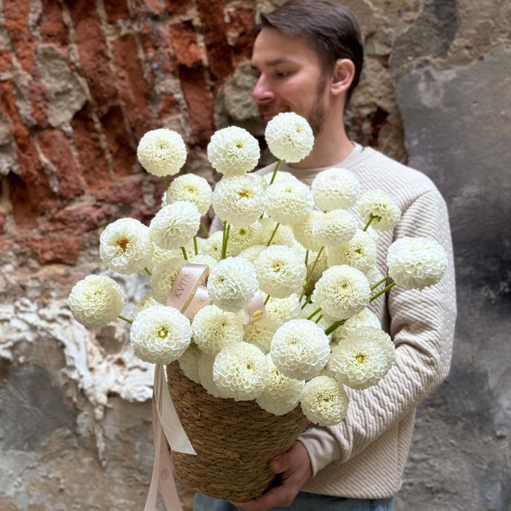 - Як замовити Білі жоржини в кошику «Ароматна заметіль»? ❯