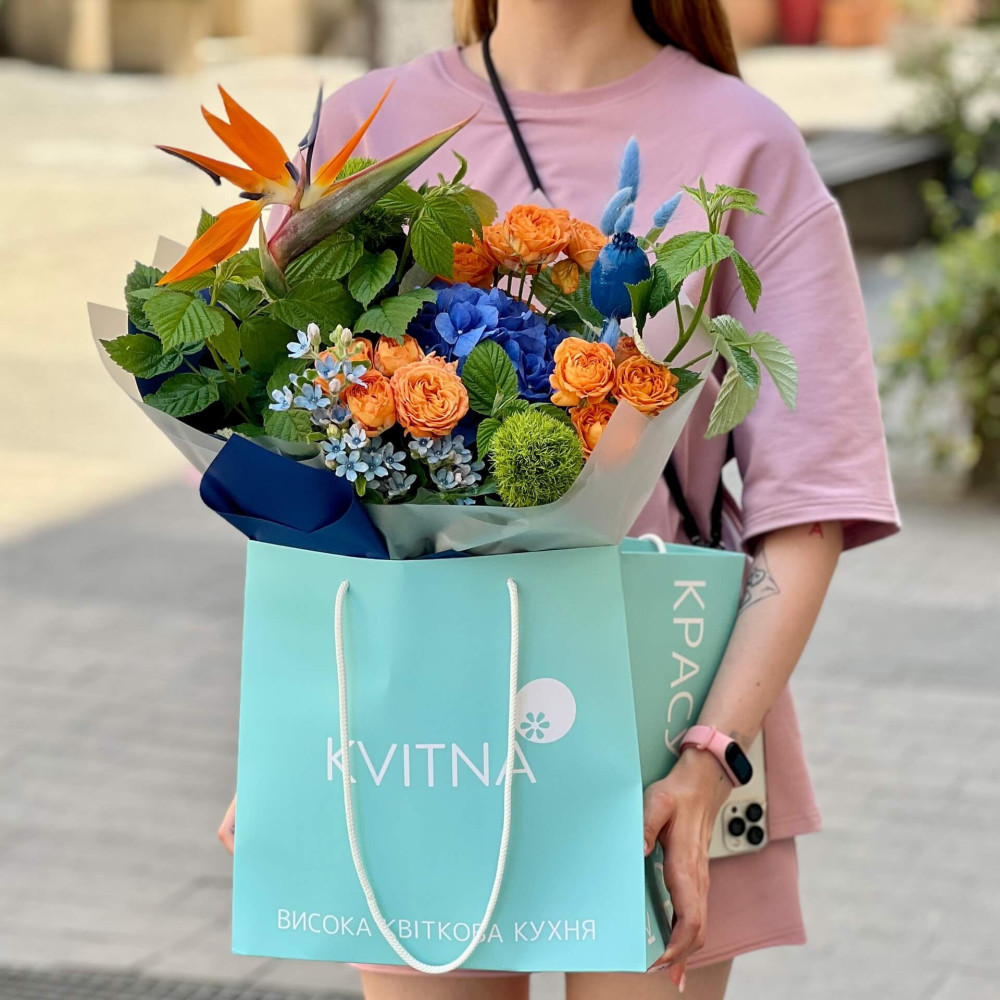 - Букети від Kvitna доставляються у фірмовому пакуванні, яке потрібно зняти при установці квітів у вазу. Не зрізайте стрічку, звʼязуючу букет, щоб зберегти його форму.