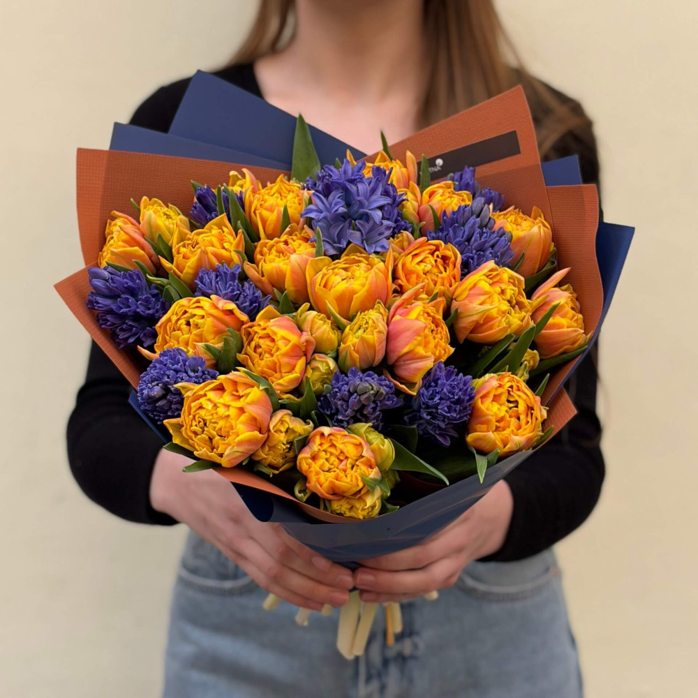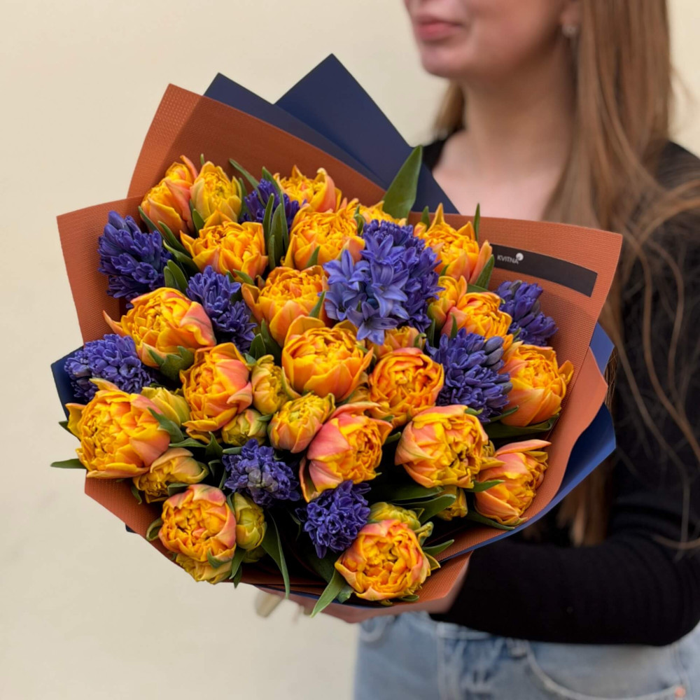 - Як замовити Контрастний букет з гіацинтами та тюльпанами «Іспанське небо»? ❯