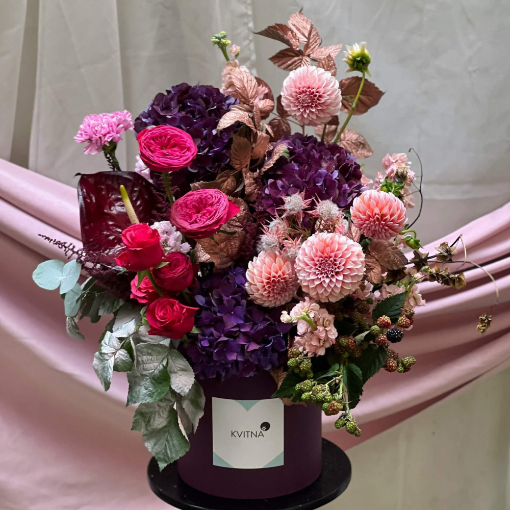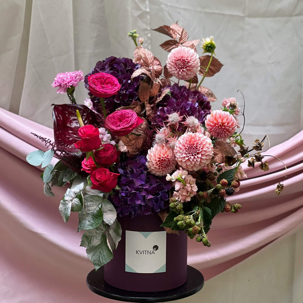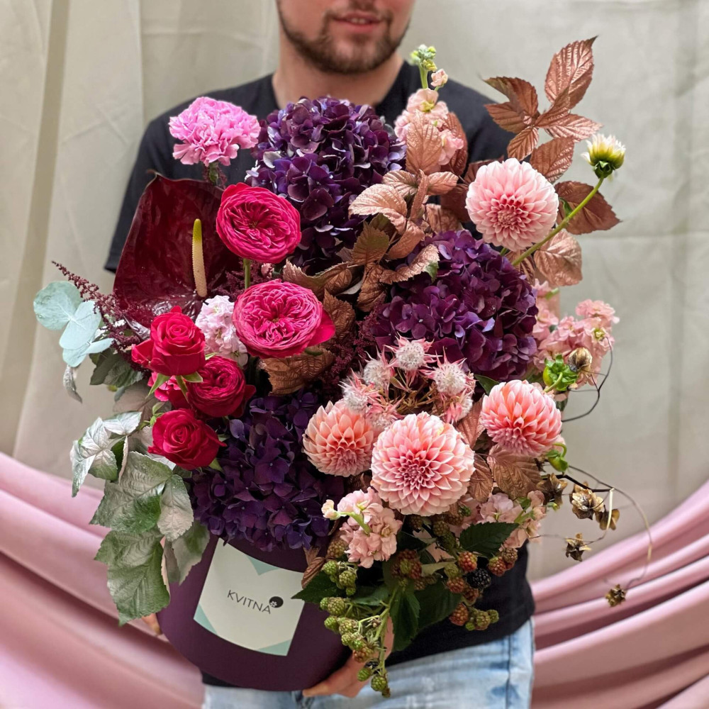 Нехай композиція (коробка, кошик, сніп) з квітами від Квітна тішить Вас якнайдовше!