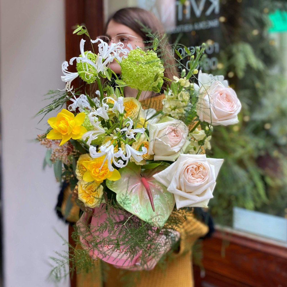 І це, до речі, зовсім не обов'язково плюси, це особливості, які потрібно розуміти. Тоді і вибір «де купити букет у Львові» зробити буде значно простіше.- Кожен букет Kvitna унікальний. Це означає, якщо Ви замовите у нас якийсь із букетів на сайті, то Ви не отримаєте точнісінько такий же. Деяких це бентежить, такі люди не хочуть «ризикувати», бажають «в точності, як на світлині». У «Квітна» кожен букет — це творчий пошук, це захоплення, злиття з квітами, образом одержувача і завданням. Так, ми можемо прийняти за вектор, зробити схожий букет, в тому ж стилі, кольоровій гамі, з тих самих квітів ... Але нам нудно робити за шаблоном. Адже букет, представлений на зображенні, робився для іншої людини, з іншого приводу, під інший настрій і натхнення. У Вас буде все по-іншому.