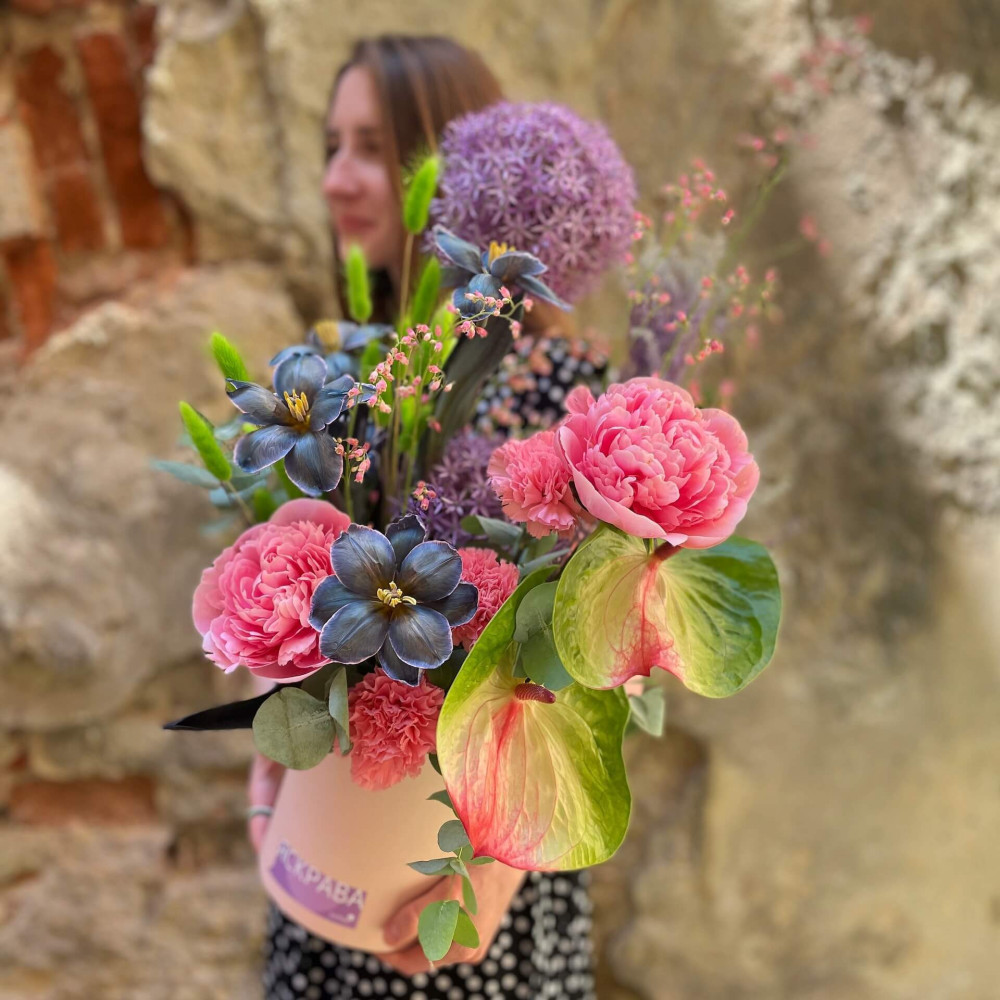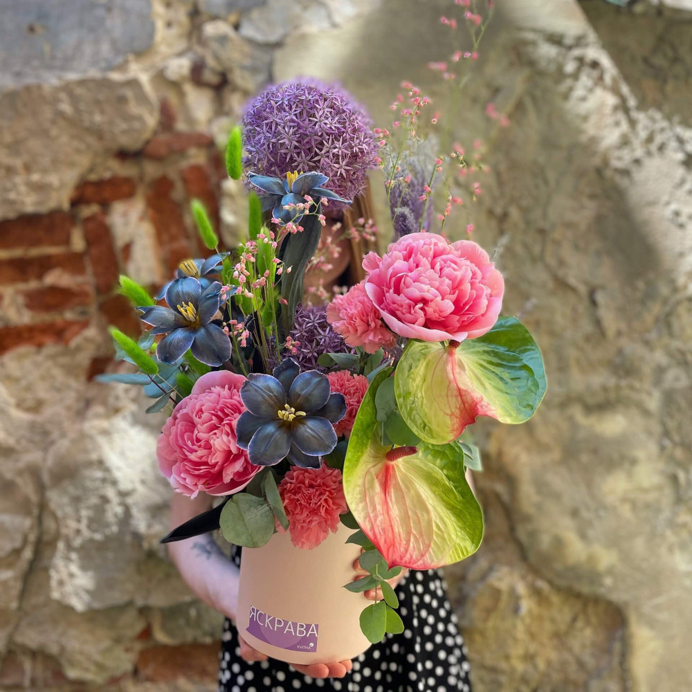 Нехай композиція (коробка, кошик, сніп) з квітами від Квітна тішить Вас якнайдовше!