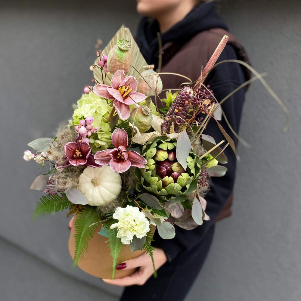 Залежно від сезонності і наявності квітів ми залишаємо за собою право змінювати склад букета без повідомлення замовника, зберігаючи при цьому авторський стиль, колірне рішення, концепцію букета. У разі, якщо необхідна заміна базової квітки, заміна відбувається з узгодженням із замовником. Якщо для Вас критично важлива присутність в складі певної квіточки – обов'язково зв'яжіться з нами та повідомте про це.