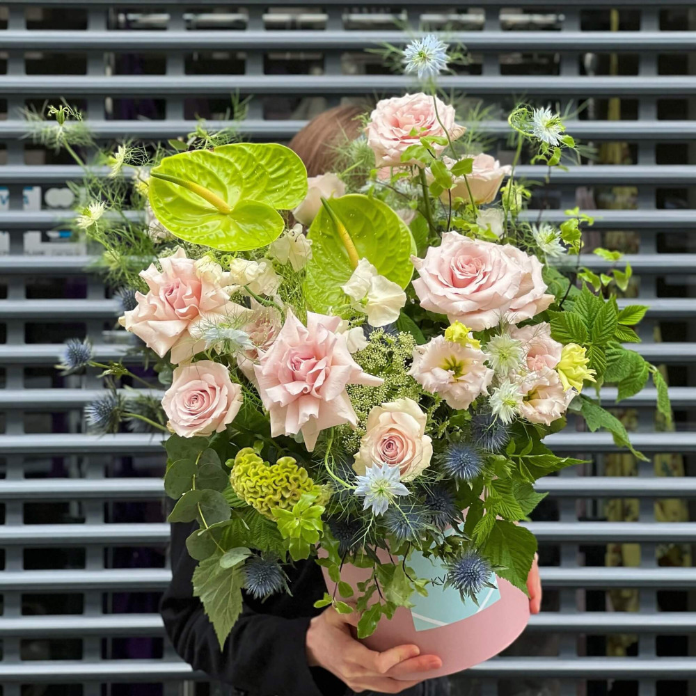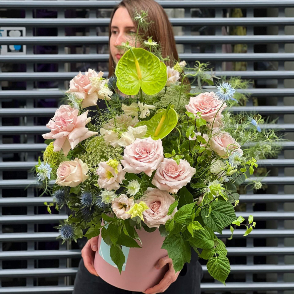 Квіти: Троянда, Нігела, Антуріум, Целозія, Ерінгіум, Аммі, Евкаліпт, Піттоспорум, Латірус, Еустома, Малина