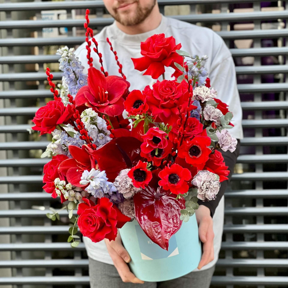 Квіти: Гіпеаструм, Троянда, Дельфініум, Анемон, Діантус, Антуріум, Евкаліпт
