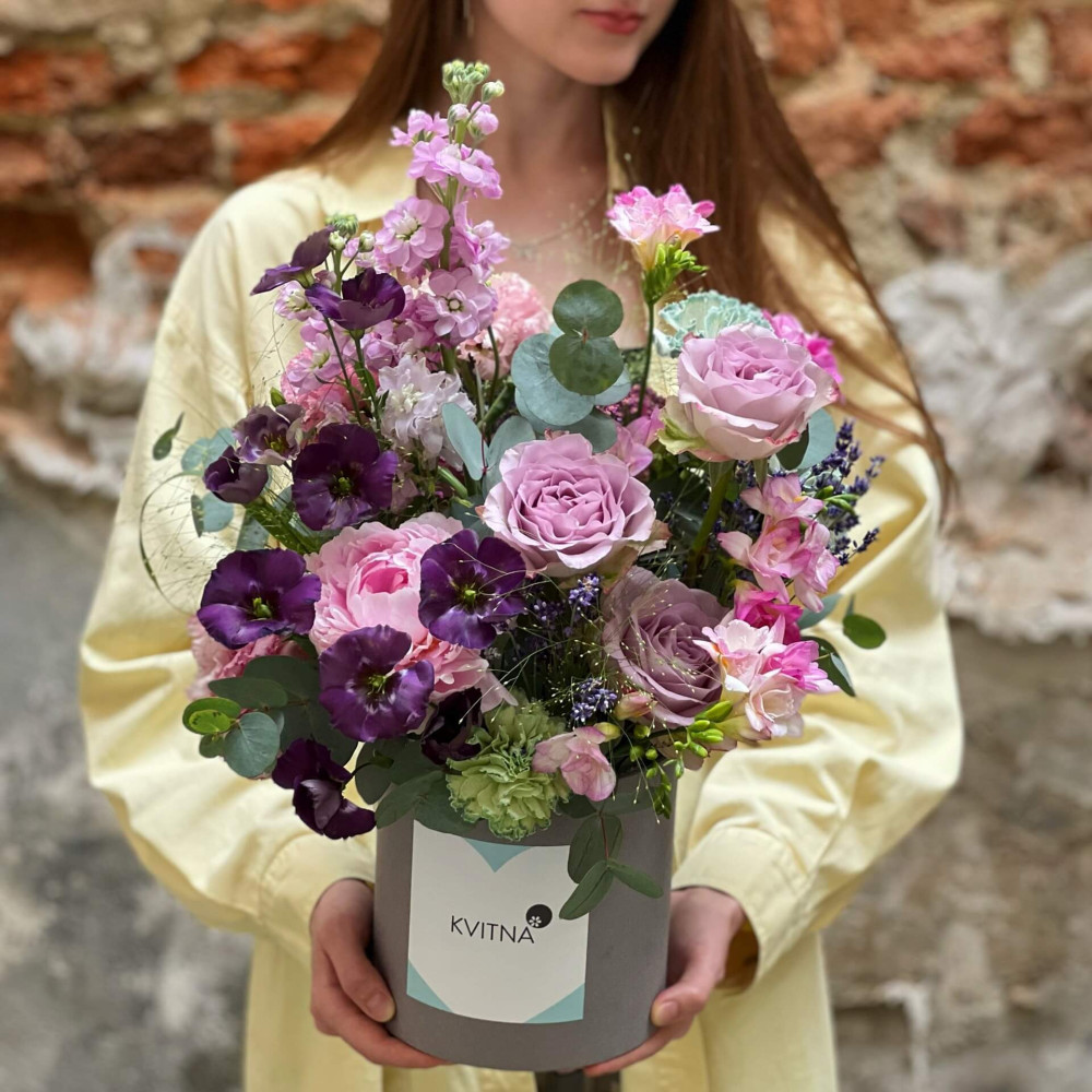 Нехай композиція (коробка, кошик, сніп) з квітами від Квітна тішить Вас якнайдовше!