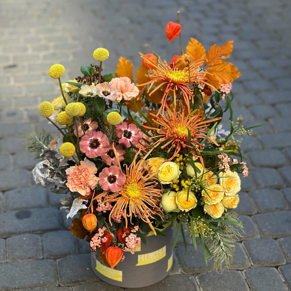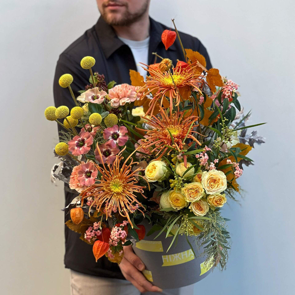 Нехай композиція (коробка, кошик, сніп) з квітами від Квітна тішить Вас якнайдовше!