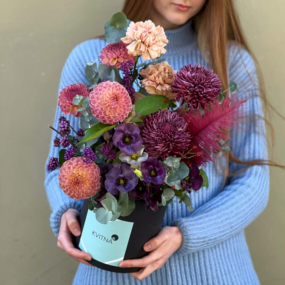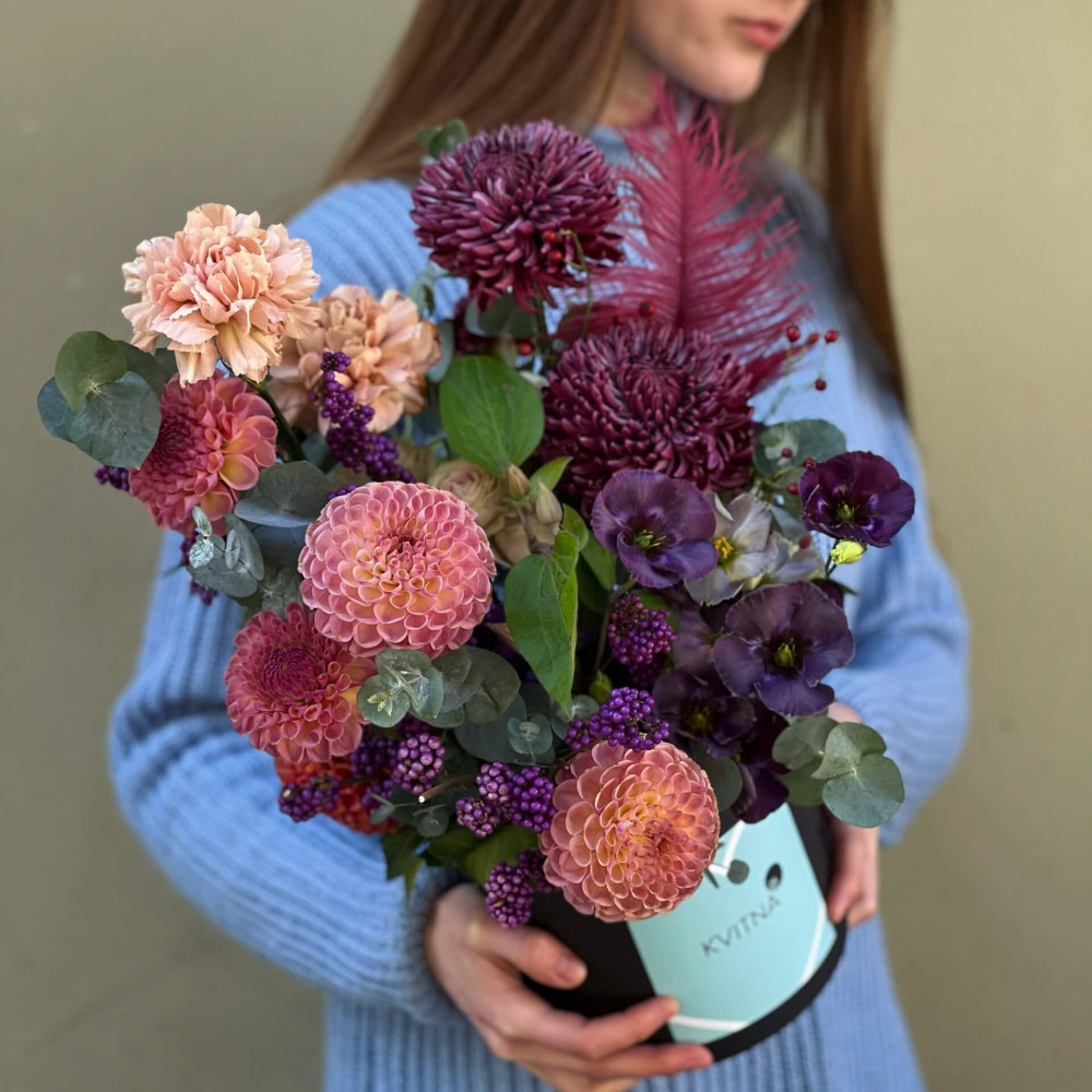 Нехай композиція (коробка, кошик, сніп) з квітами від Квітна тішить Вас якнайдовше!