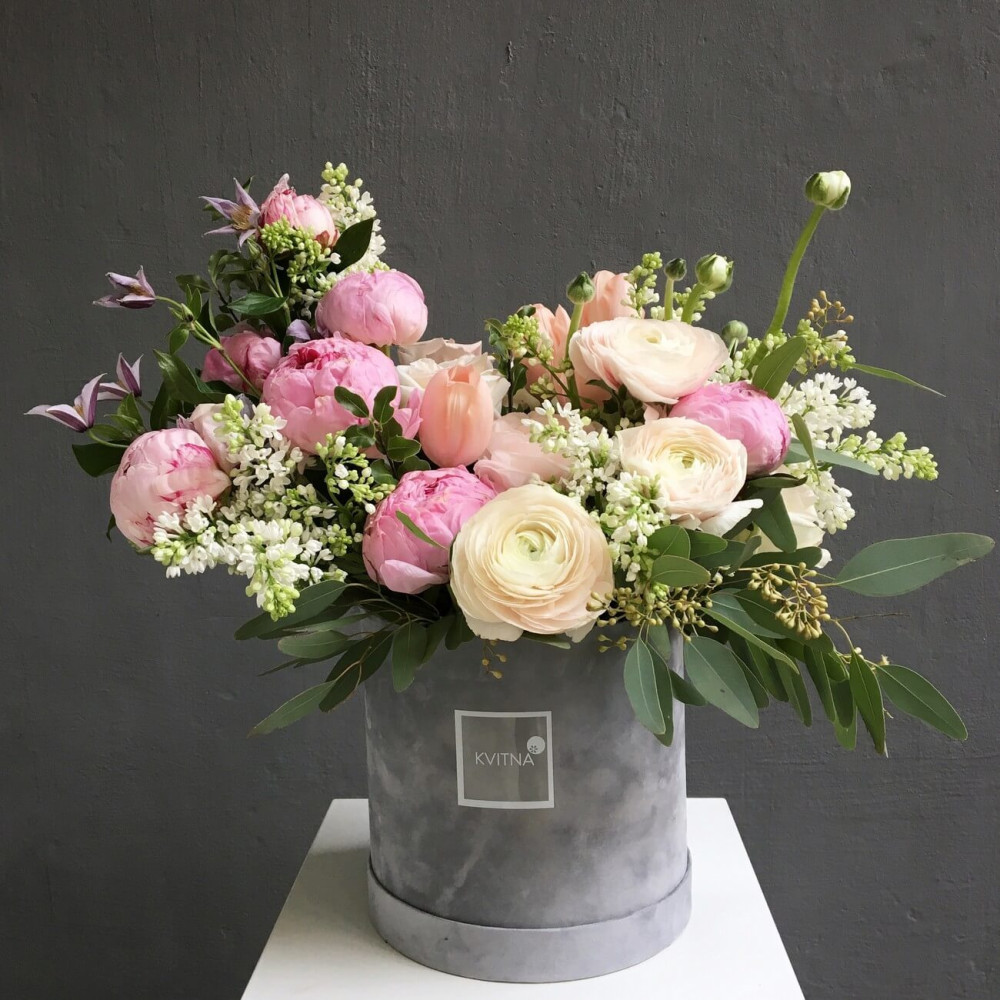 Нехай композиція (коробка, кошик, сніп) з квітами від Квітна тішить Вас якнайдовше!