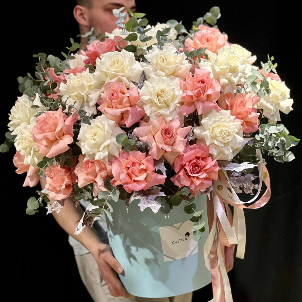 Нехай композиція (коробка, кошик, сніп) з квітами від Квітна тішить Вас якнайдовше!