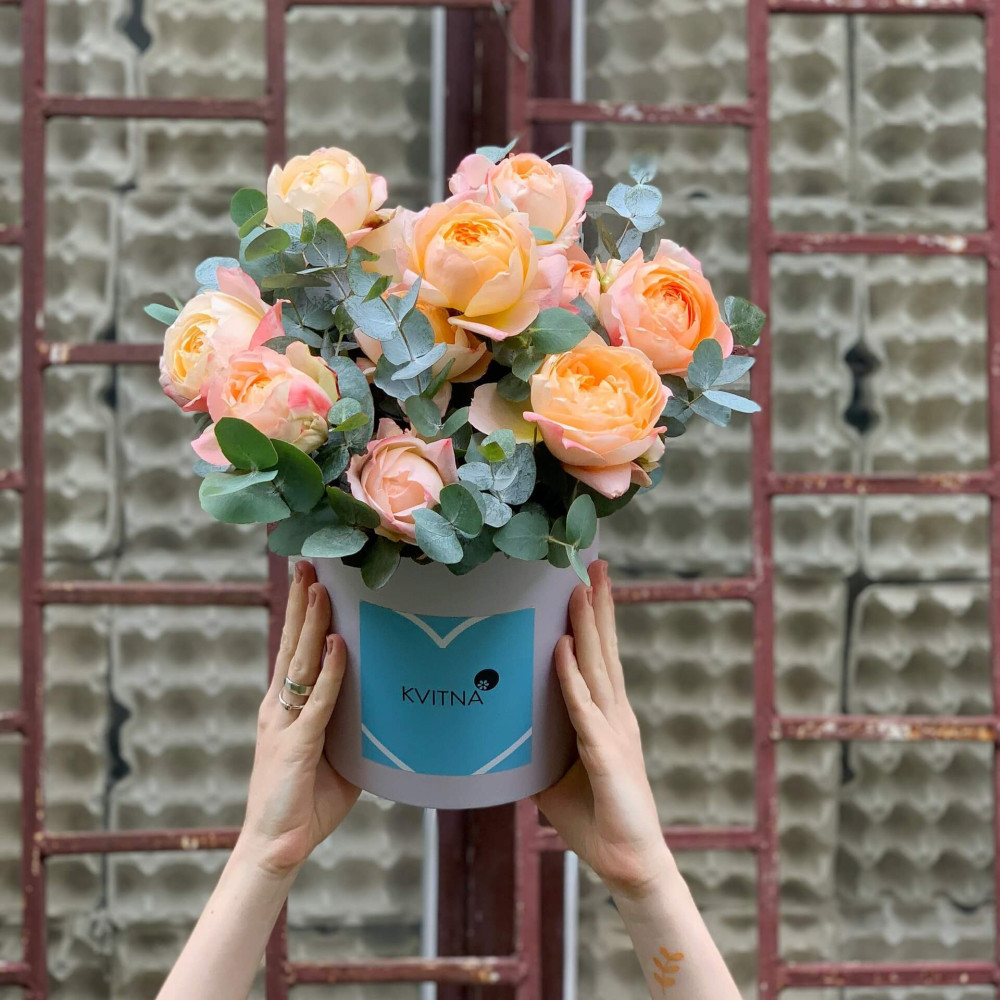 Нехай композиція (коробка, кошик, сніп) з квітами від Квітна тішить Вас якнайдовше!