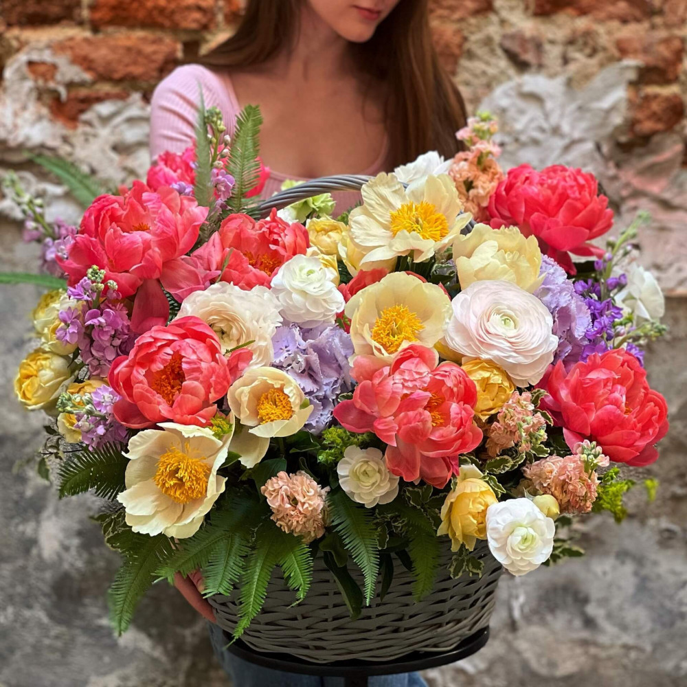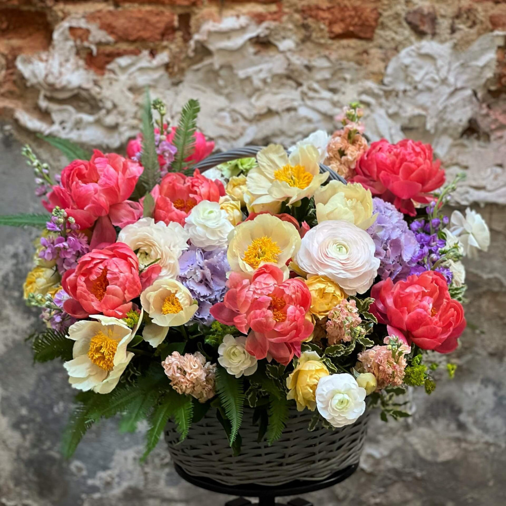 Квіти: Півонія, Ранункулюс, Троянда піоновидна, Амбрела, Гортензія, Матіола, Піттоспорум, Буплерум