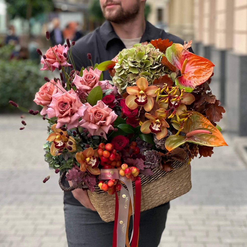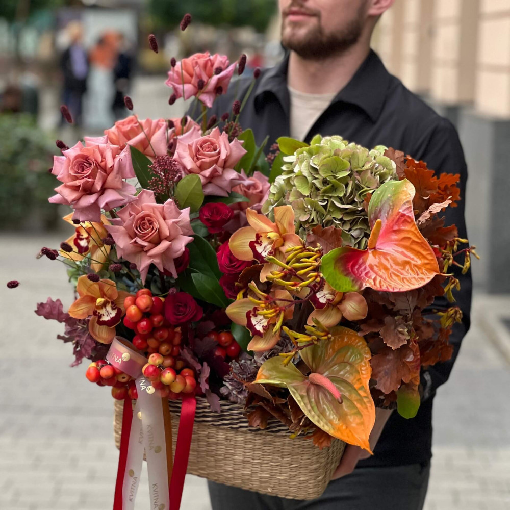 Прекрасна, як сама осінь в жовтні, яскрава композиція, створена для того, аби ти відчула себе королевою, адже всю красу сезону тут зібрано в гармонію саме для тебе.