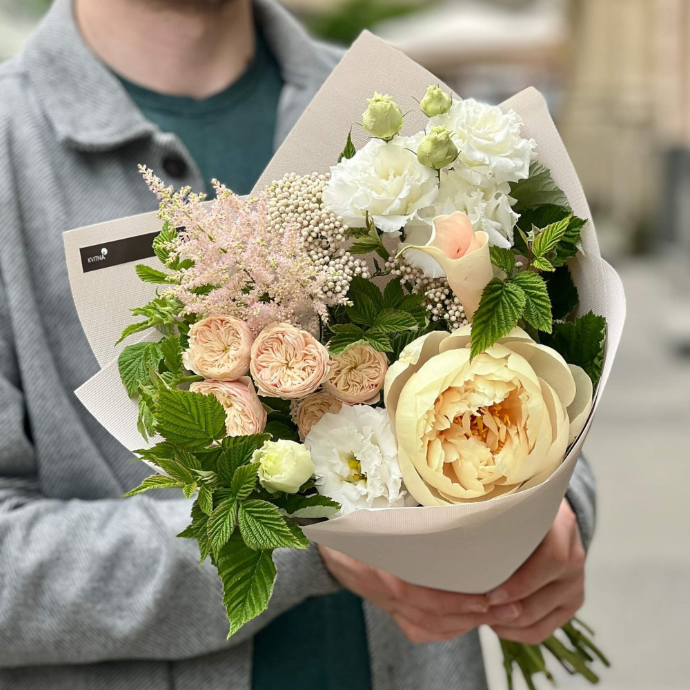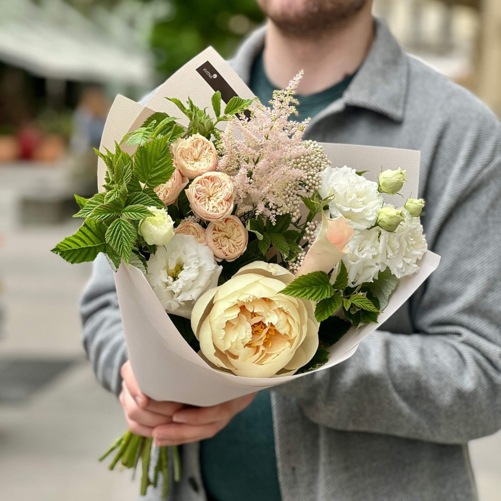 - Як замовити Кремовий букет з півонією «Львівська перлинка»? ❯