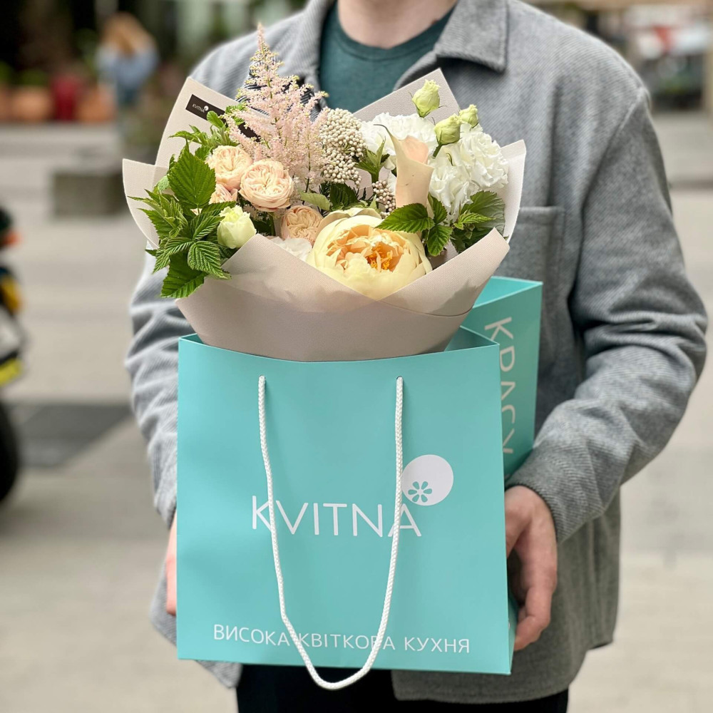 І це, до речі, зовсім не обов'язково плюси, це особливості, які потрібно розуміти. Тоді і вибір «де купити букет у Львові» зробити буде значно простіше.- Кожен букет Kvitna унікальний. Це означає, якщо Ви замовите у нас якийсь із букетів на сайті, то Ви не отримаєте точнісінько такий же. Деяких це бентежить, такі люди не хочуть «ризикувати», бажають «в точності, як на світлині». У «Квітна» кожен букет — це творчий пошук, це захоплення, злиття з квітами, образом одержувача і завданням. Так, ми можемо прийняти за вектор, зробити схожий букет, в тому ж стилі, кольоровій гамі, з тих самих квітів ... Але нам нудно робити за шаблоном. Адже букет, представлений на зображенні, робився для іншої людини, з іншого приводу, під інший настрій і натхнення. У Вас буде все по-іншому.