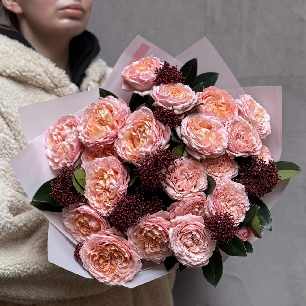 - Як замовити Кущова піоновидна троянда Juliet у букеті «Пухка мрія»? ❯