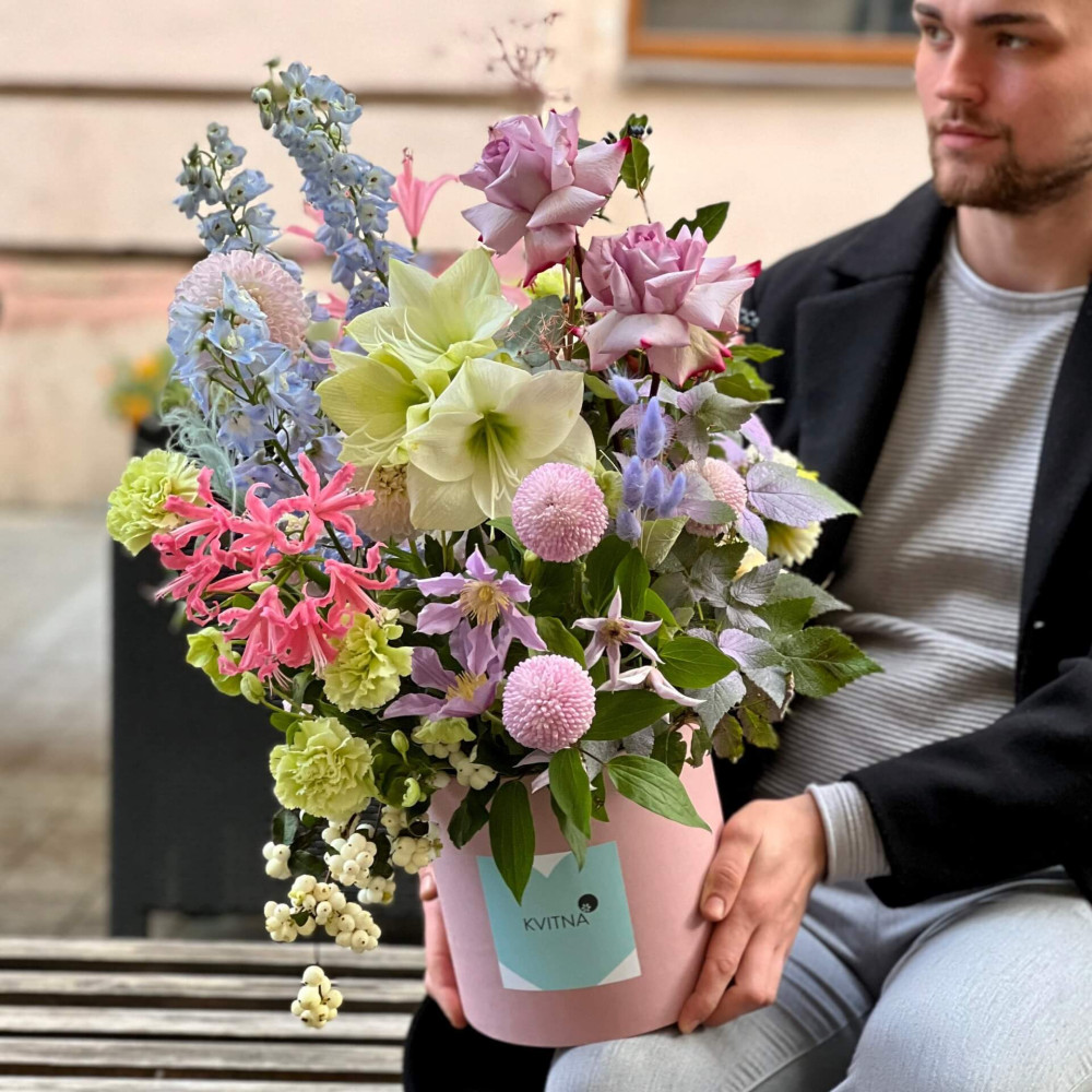І це, до речі, зовсім не обов'язково плюси, це особливості, які потрібно розуміти. Тоді і вибір «де купити букет у Львові» зробити буде значно простіше.- Кожен букет Kvitna унікальний. Це означає, якщо Ви замовите у нас якийсь із букетів на сайті, то Ви не отримаєте точнісінько такий же. Деяких це бентежить, такі люди не хочуть «ризикувати», бажають «в точності, як на світлині». У «Квітна» кожен букет — це творчий пошук, це захоплення, злиття з квітами, образом одержувача і завданням. Так, ми можемо прийняти за вектор, зробити схожий букет, в тому ж стилі, кольоровій гамі, з тих самих квітів ... Але нам нудно робити за шаблоном. Адже букет, представлений на зображенні, робився для іншої людини, з іншого приводу, під інший настрій і натхнення. У Вас буде все по-іншому.