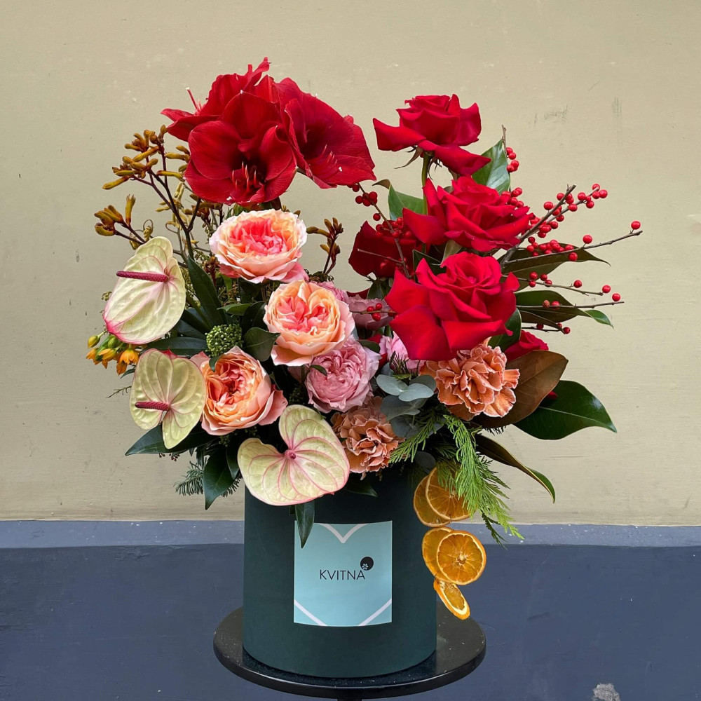 Нехай композиція (коробка, кошик, сніп) з квітами від Квітна тішить Вас якнайдовше!