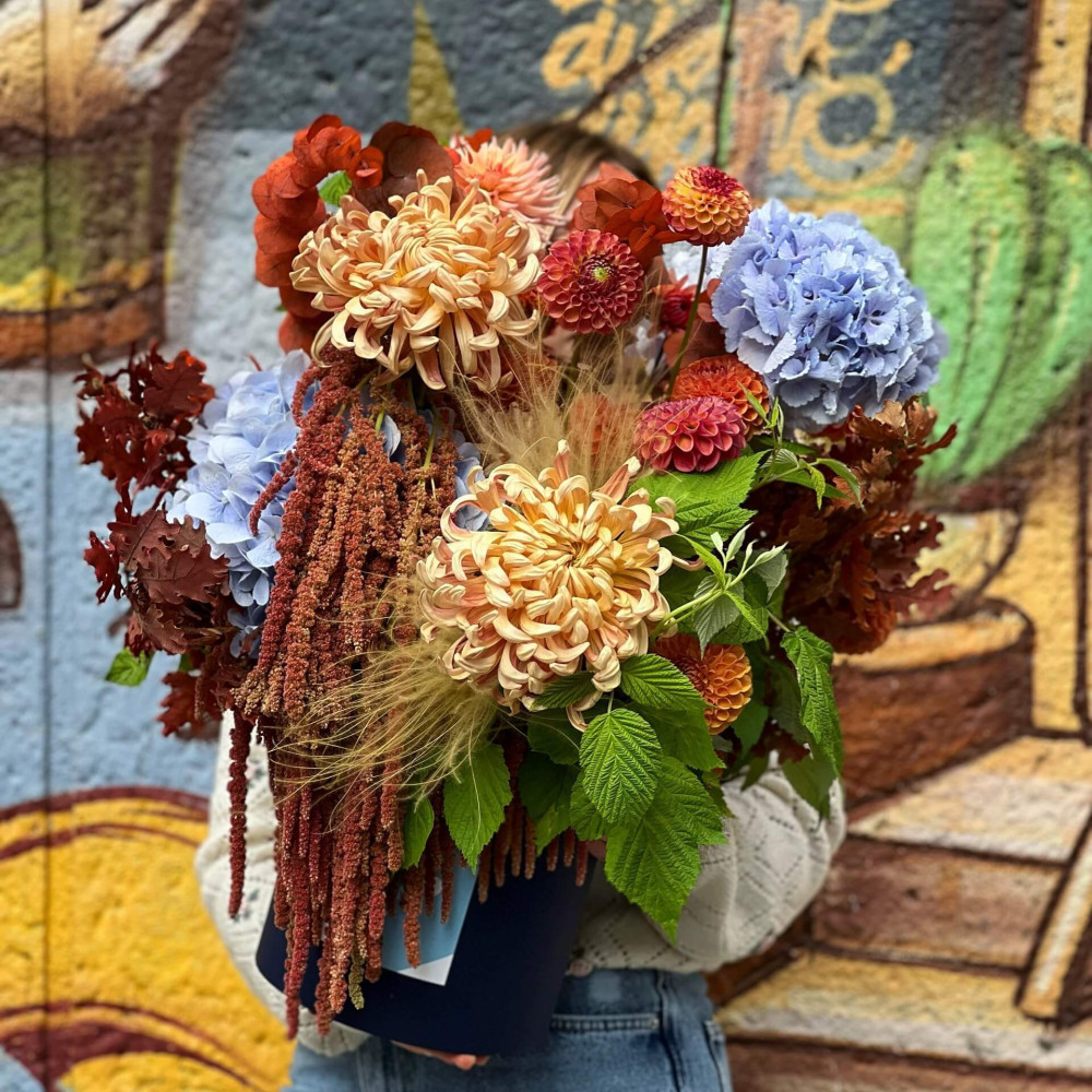 Квіти: Хризантема, Гортензія, Жоржина, Амарант хвостатий, Евкаліпт