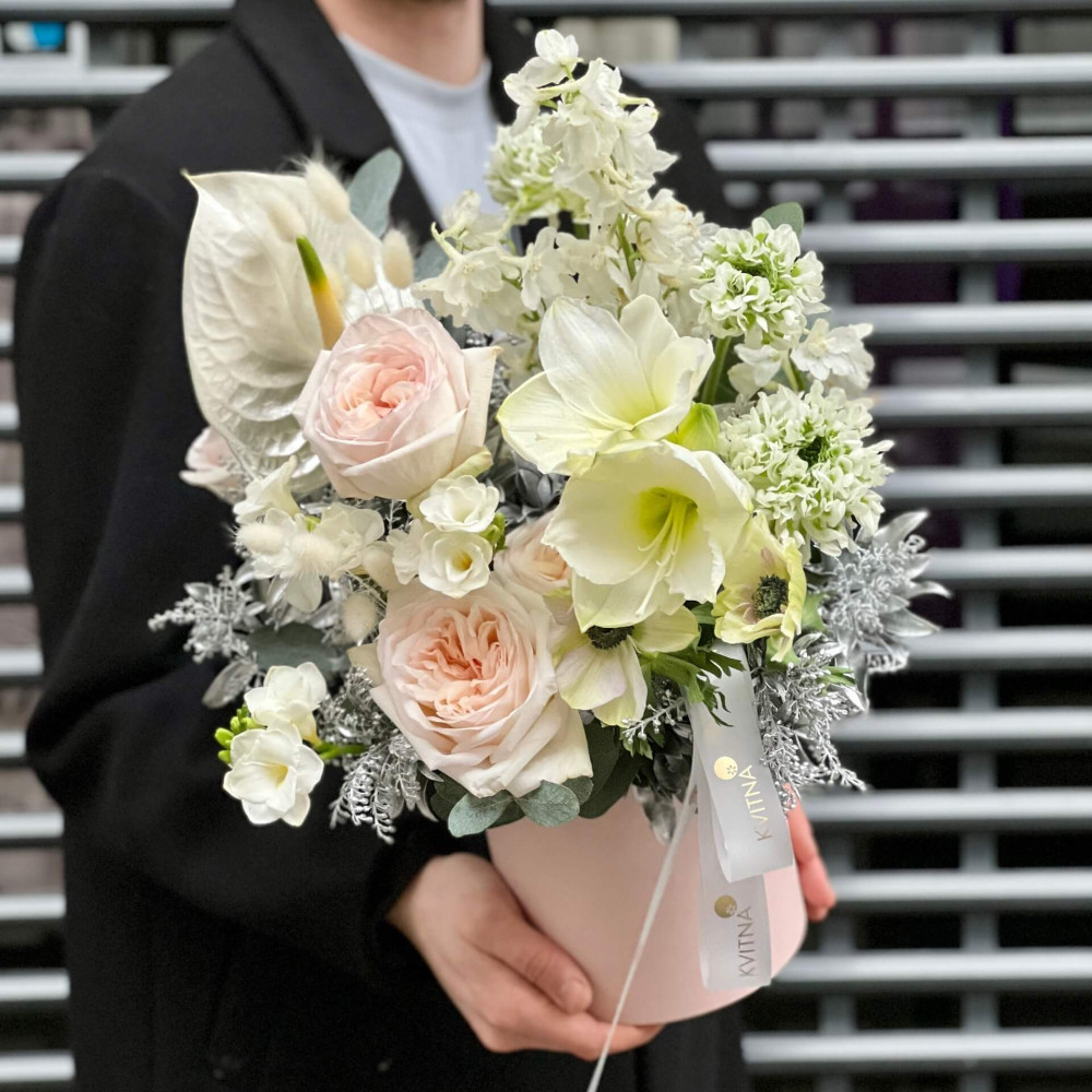 Квіти: Троянда, Антуріум, Гіпеаструм, Дельфініум, Ранункулюс, Фрезія, Анемон, Пієріс