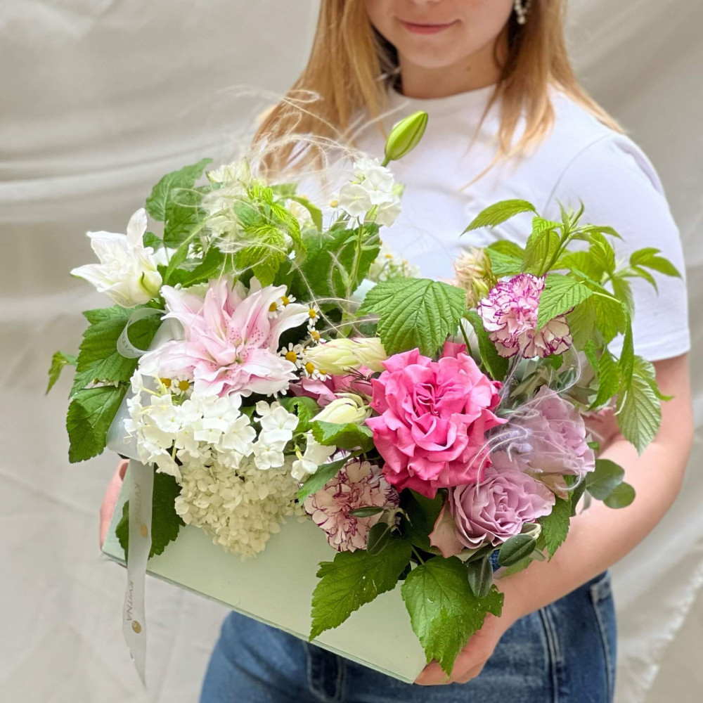 Квіти: Троянда піоновидна, Лілія, Діантус, Троянда, Серрурія, Танацетум, Гортензія, Малина
