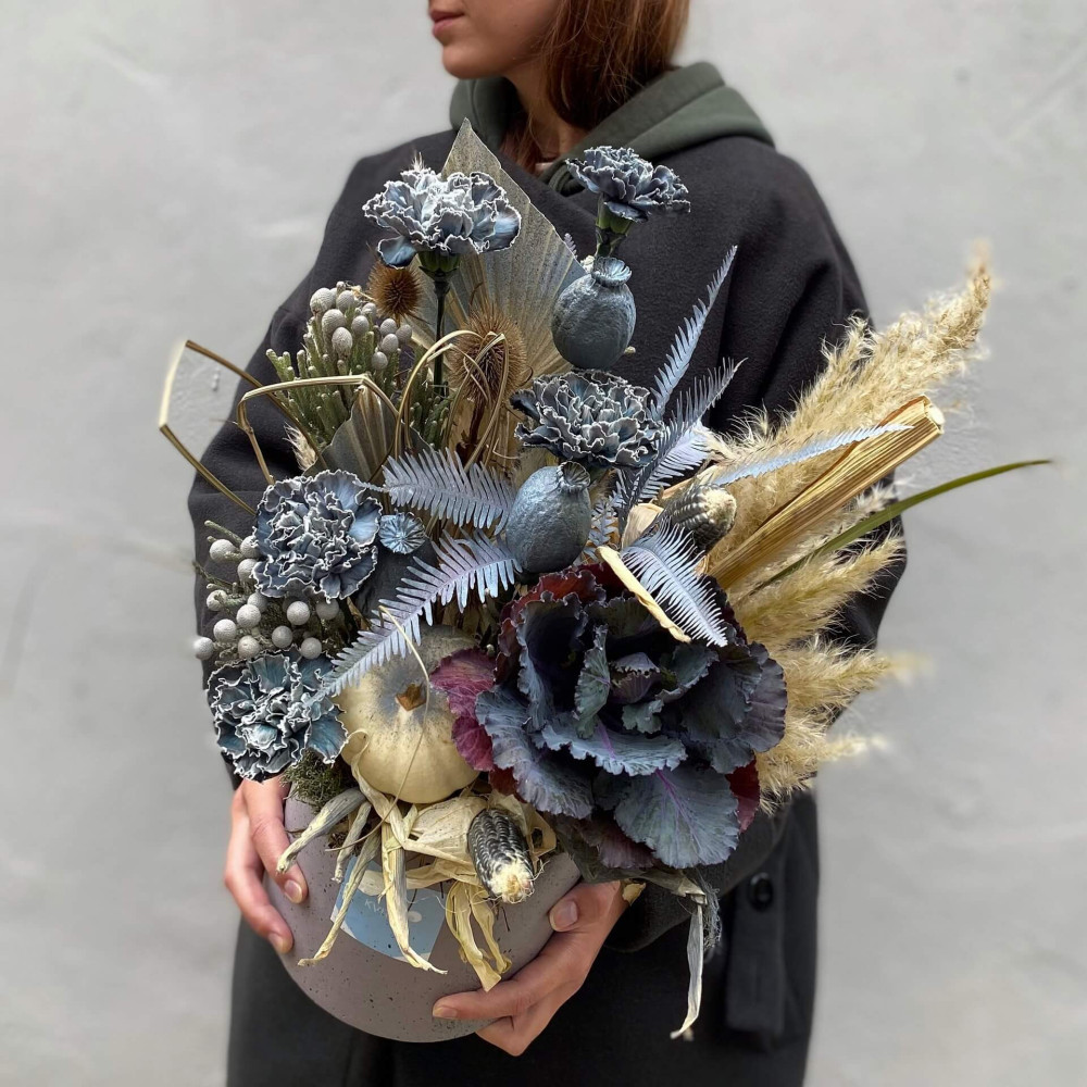 Нехай композиція (коробка, кошик, сніп) з квітами від Квітна тішить Вас якнайдовше!