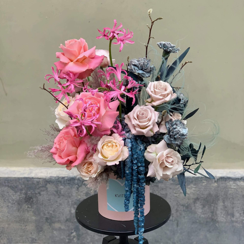 Нехай композиція (коробка, кошик, сніп) з квітами від Квітна тішить Вас якнайдовше!