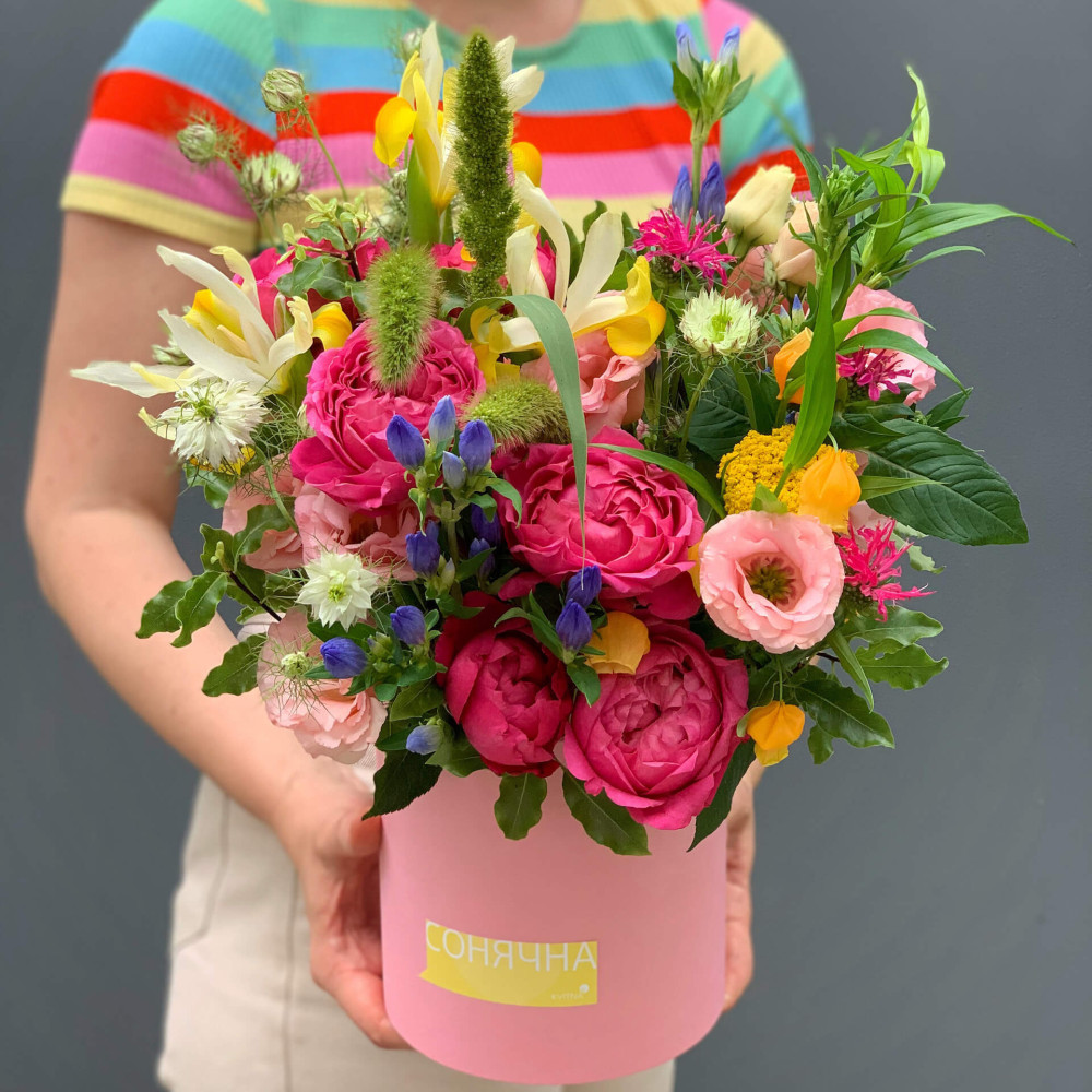 Нехай композиція (коробка, кошик, сніп) з квітами від Квітна тішить Вас якнайдовше!