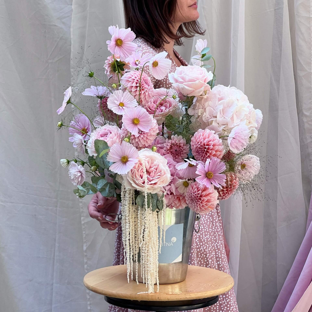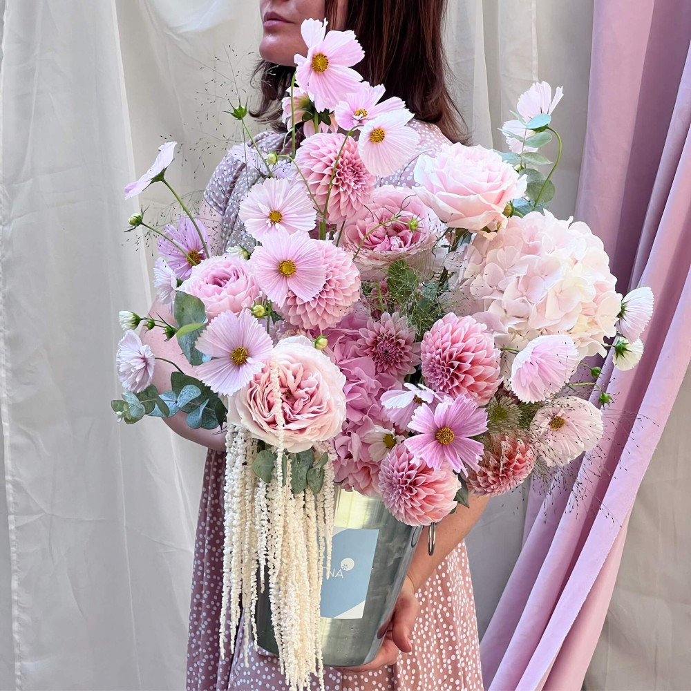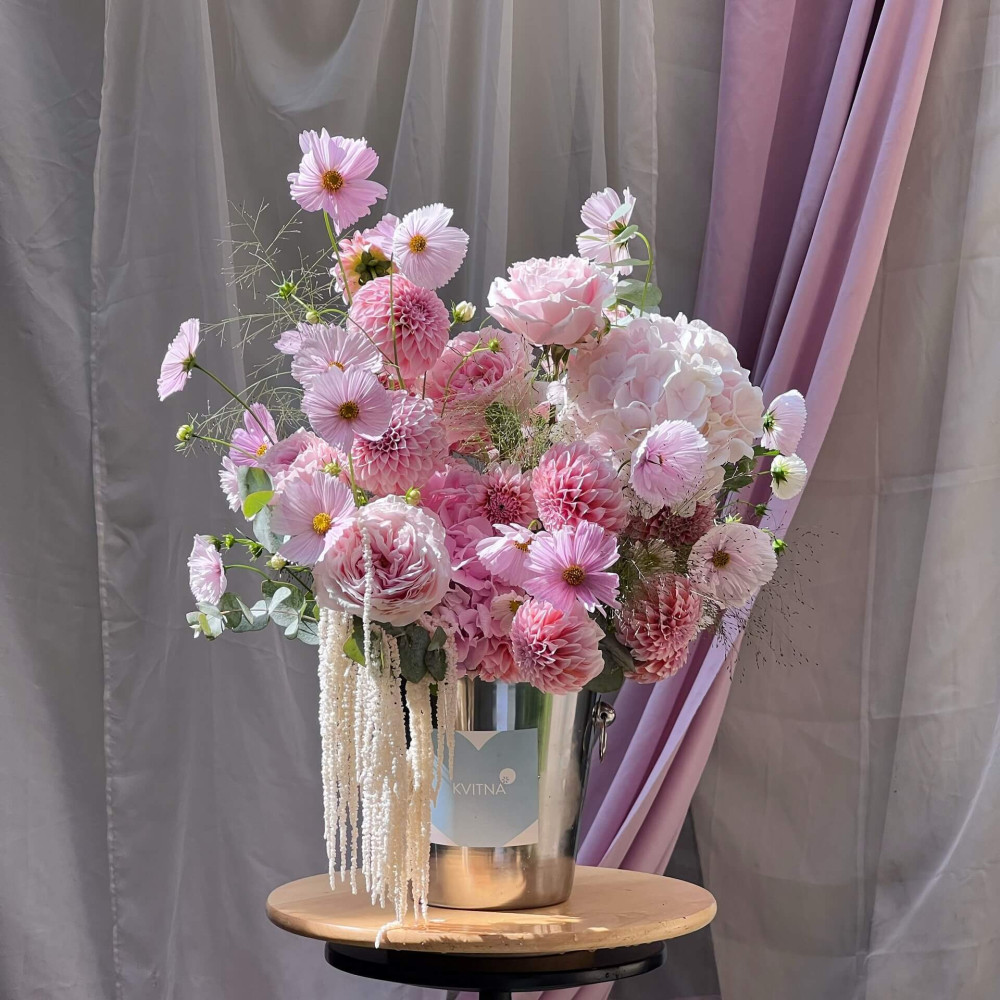 - Як замовити Квіткове відерце «Рожеві бульбашки»? ❯