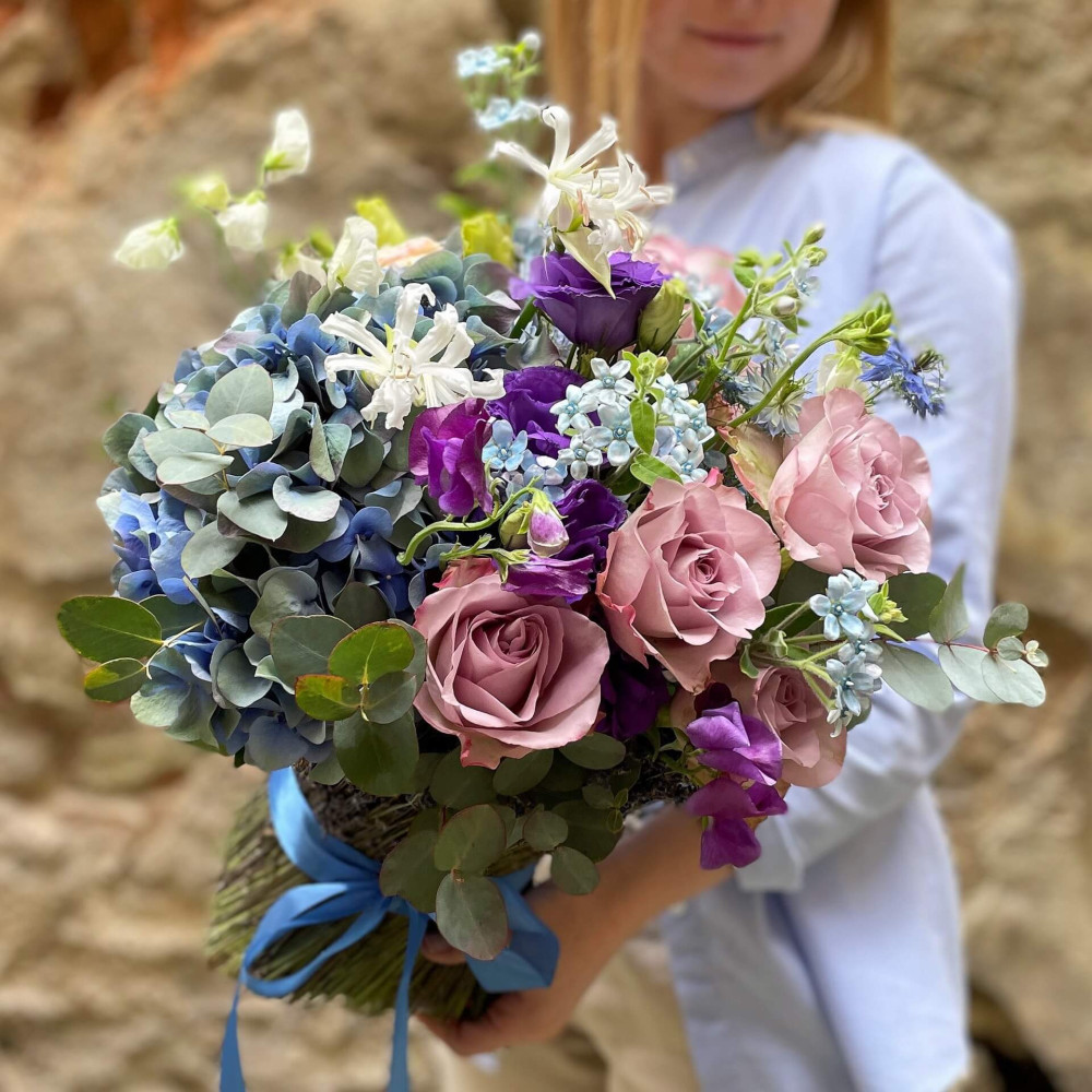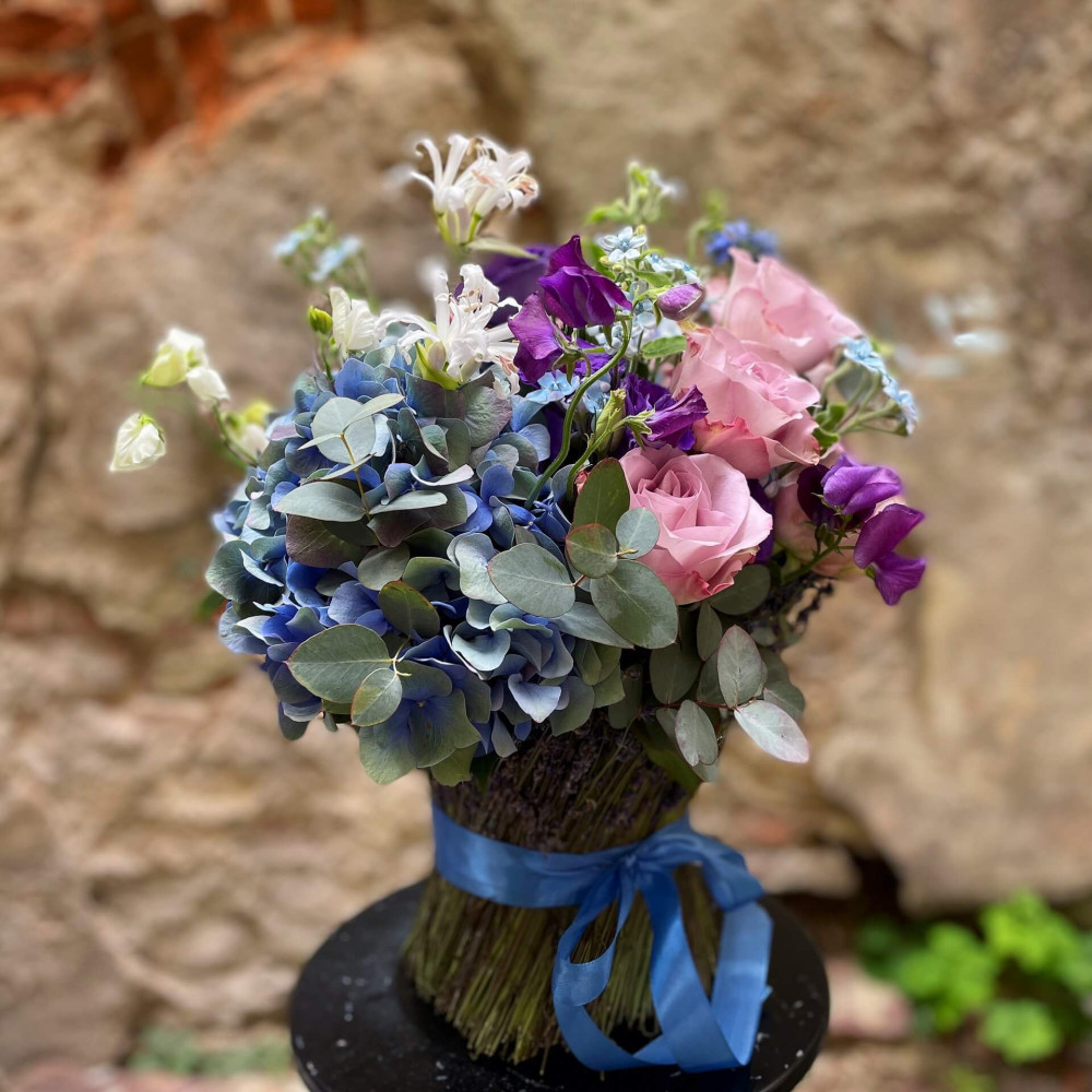 Квіти: Троянда, Неріне, Гортензія, Оксіпеталум, Нігела, Евкаліпт, Лаванда