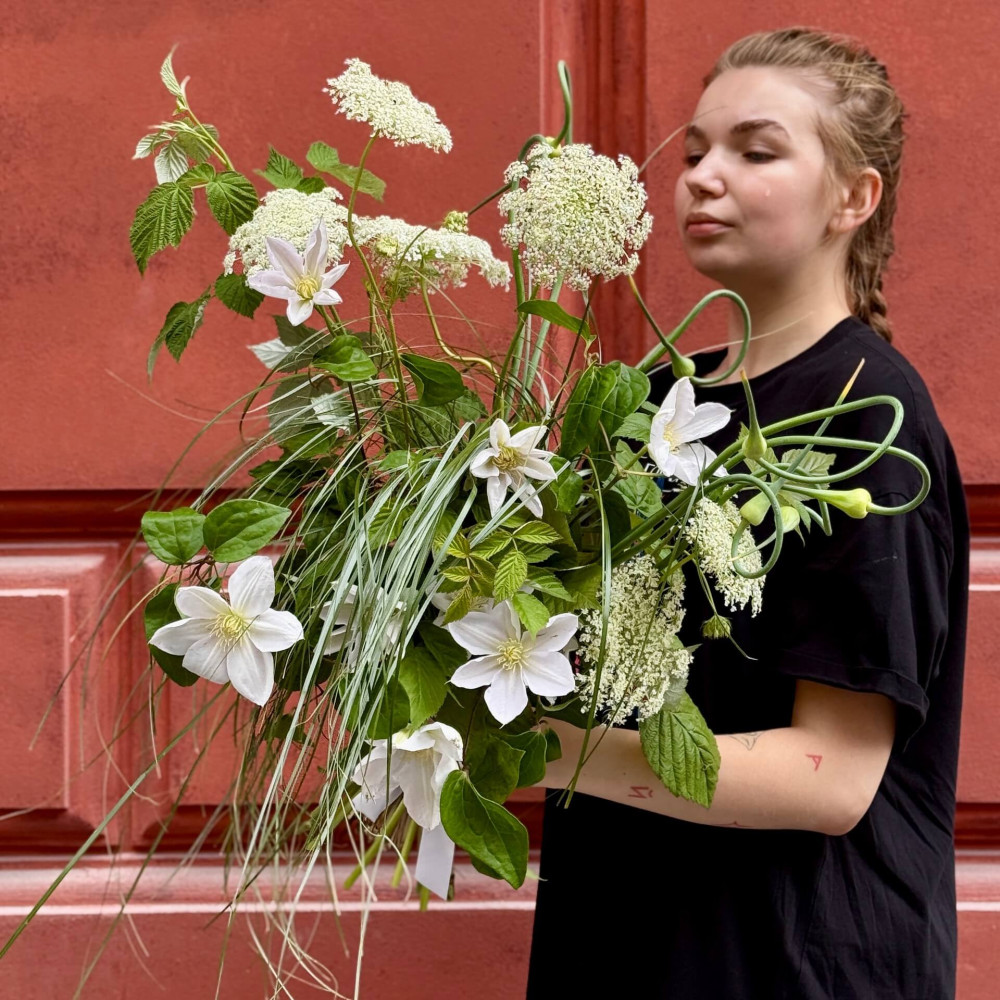 - Як замовити Легкий біло-зелений букет із сортовими клематісами «Стрибок балерини»? ❯