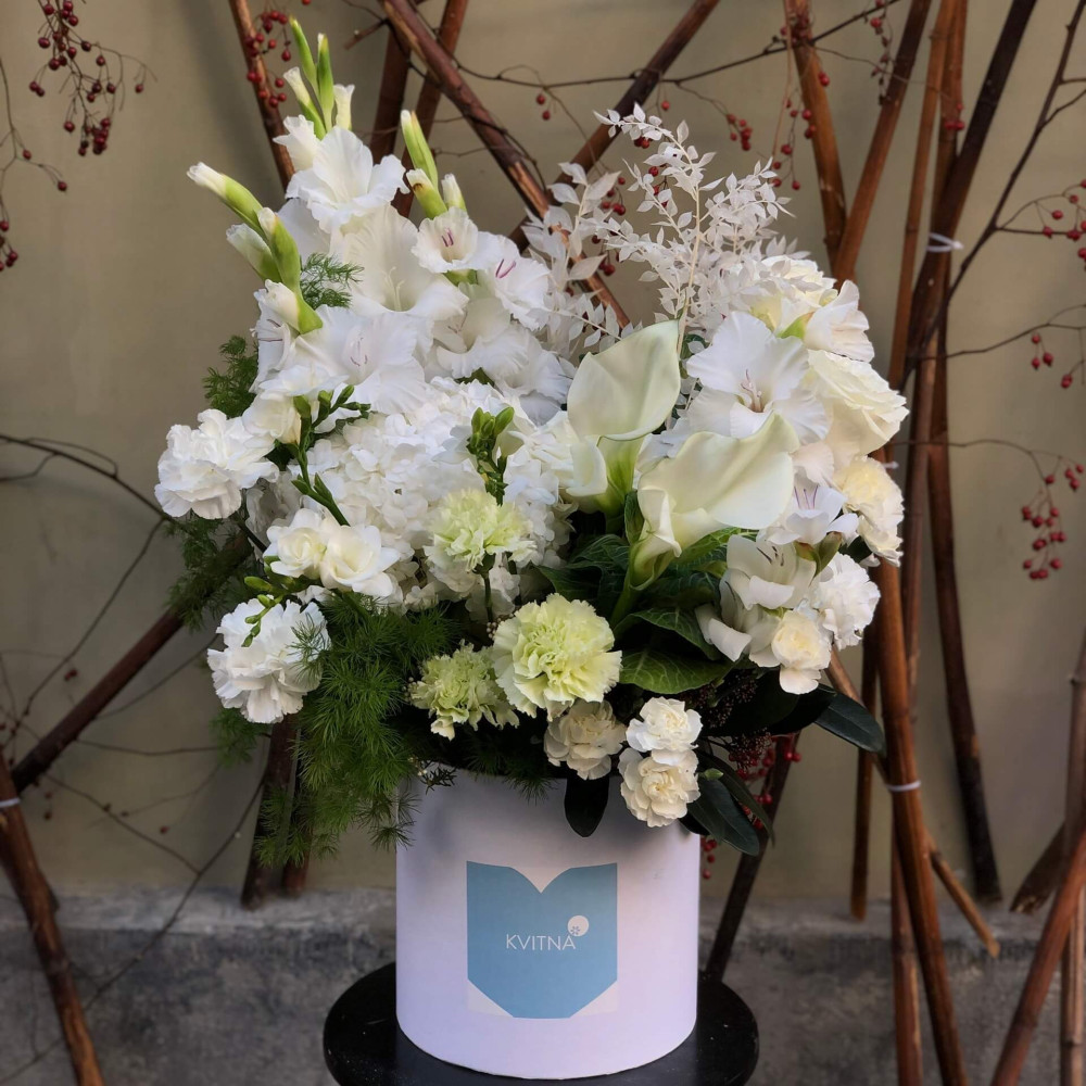 Нехай композиція (коробка, кошик, сніп) з квітами від Квітна тішить Вас якнайдовше!