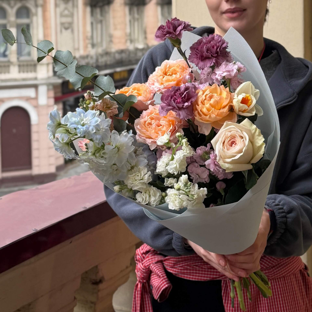 Залежно від сезонності і наявності квітів ми залишаємо за собою право змінювати склад букета без повідомлення замовника, зберігаючи при цьому авторський стиль, колірне рішення, концепцію букета. У разі, якщо необхідна заміна базової квітки, заміна відбувається з узгодженням із замовником. Якщо для Вас критично важлива присутність в складі певної квіточки – обов'язково зв'яжіться з нами та повідомте про це.