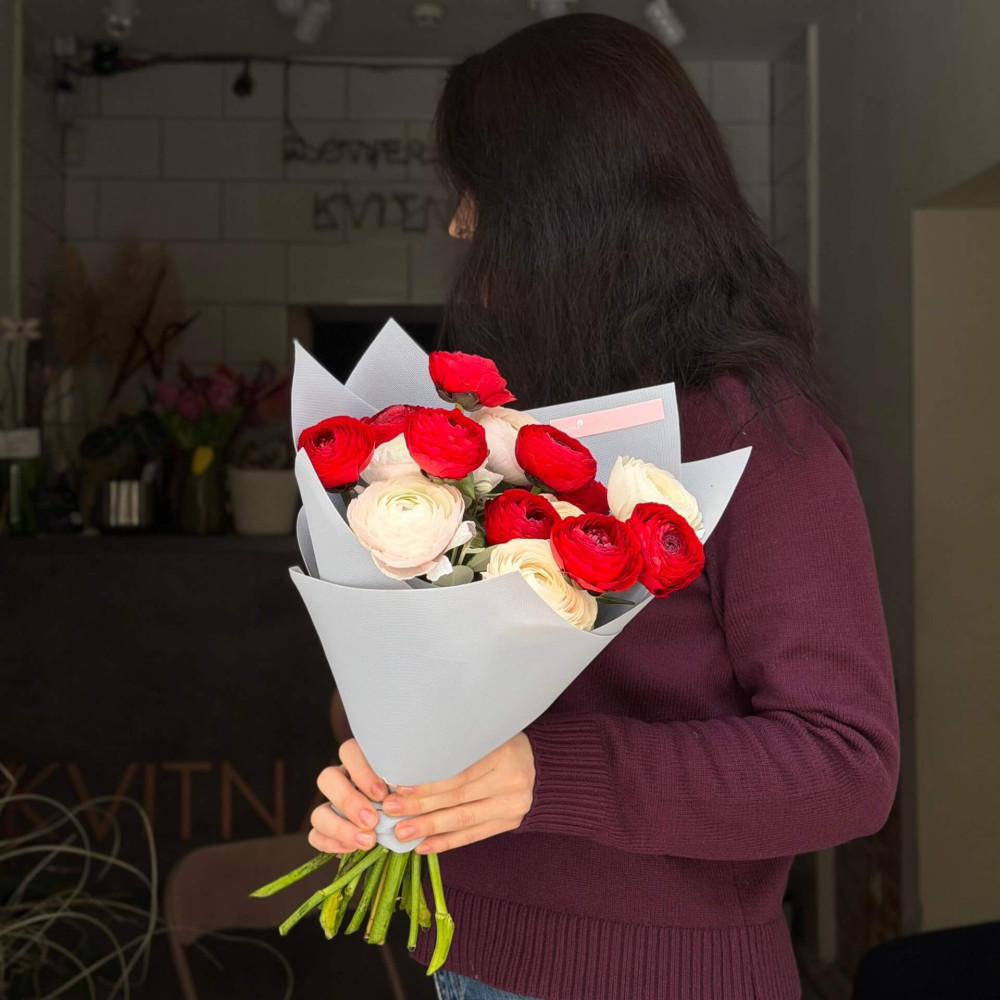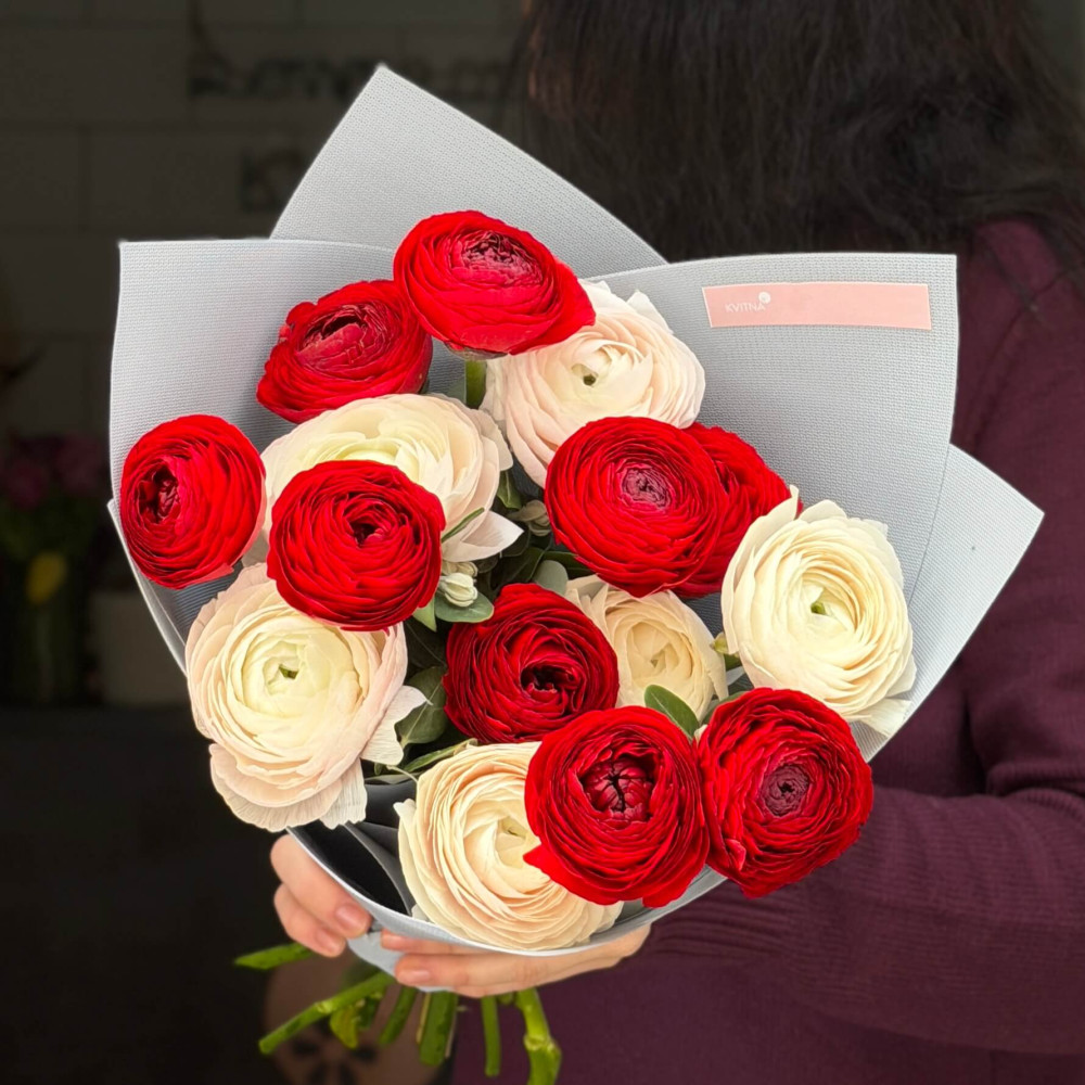 - Як замовити Мікс із 15 чарівних ранункулюсів у букеті «Біле полум'я»? ❯