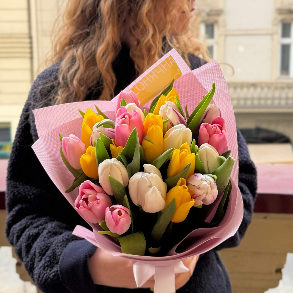 Мікс із 23 кольорових тюльпанів «Щастячко»