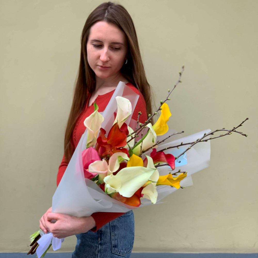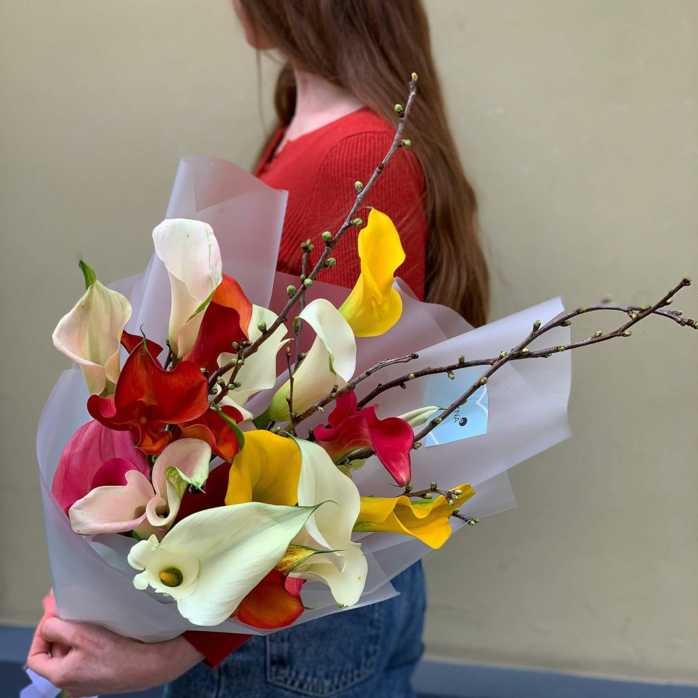 Кала доступна цілий рік, тому букети будуть без замін, або заміни квітів будуть мінімальними. Але краще уточніть наявність потрібного Вам сорту і кольору до оформлення замовлення Вашого ідеального букета з кал.