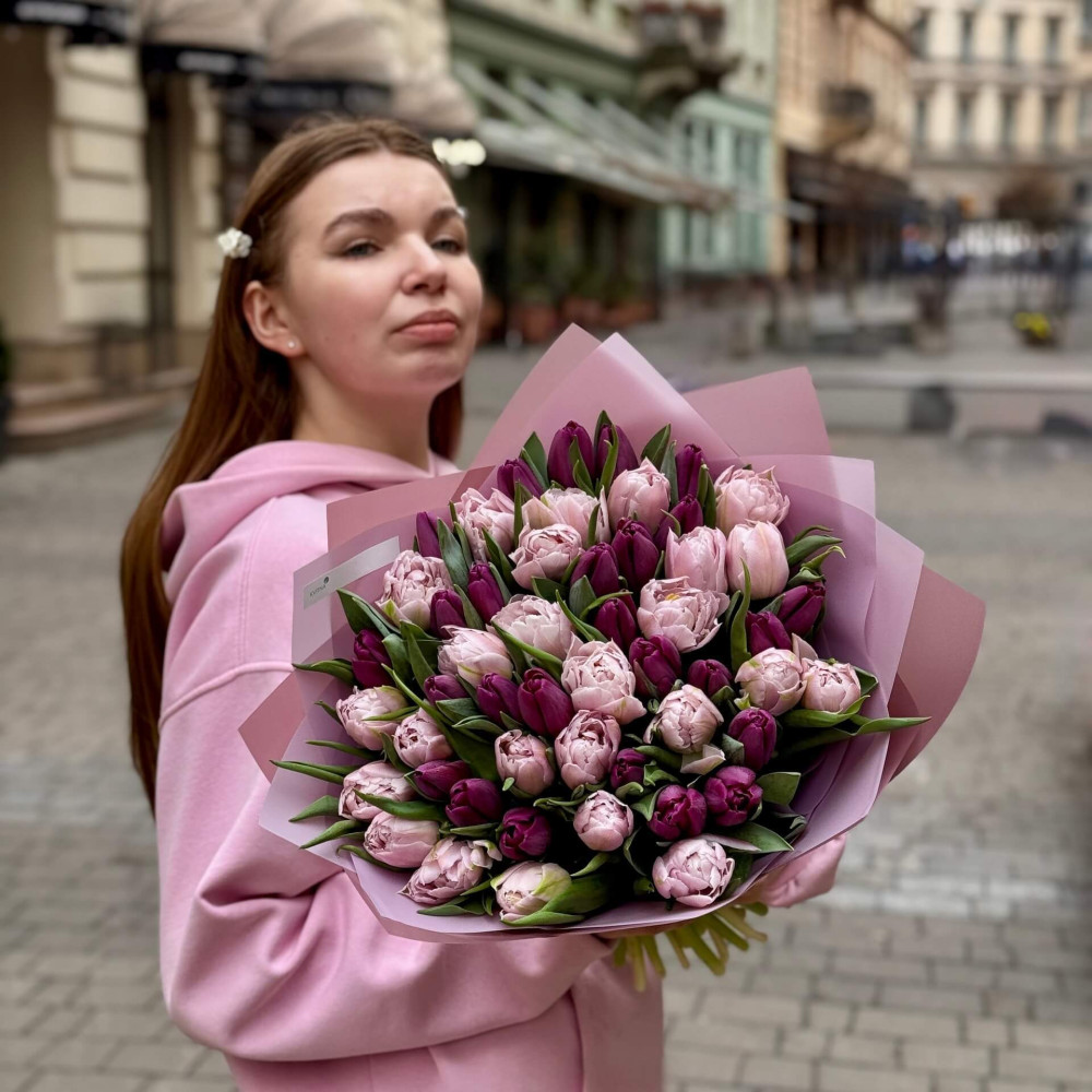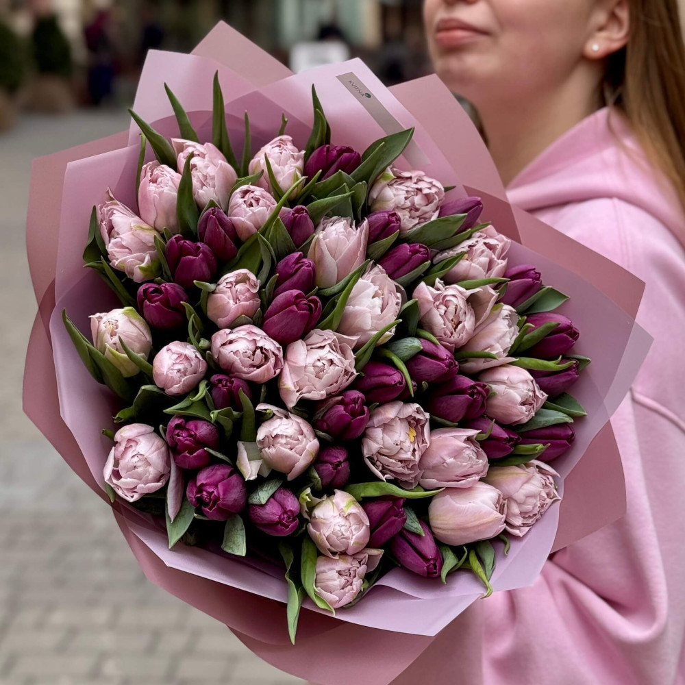 - Як замовити Мікс з 51 класичного та піоновидного тюльпана у букеті «Львівський туман»? ❯