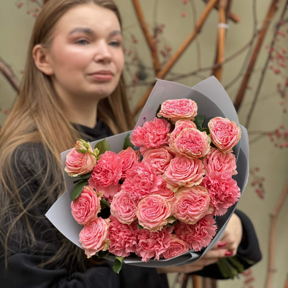 - Як замовити Милий букет із кущової піоновидної троянди Bal Musette та діантусів «Рожевий бал»? ❯